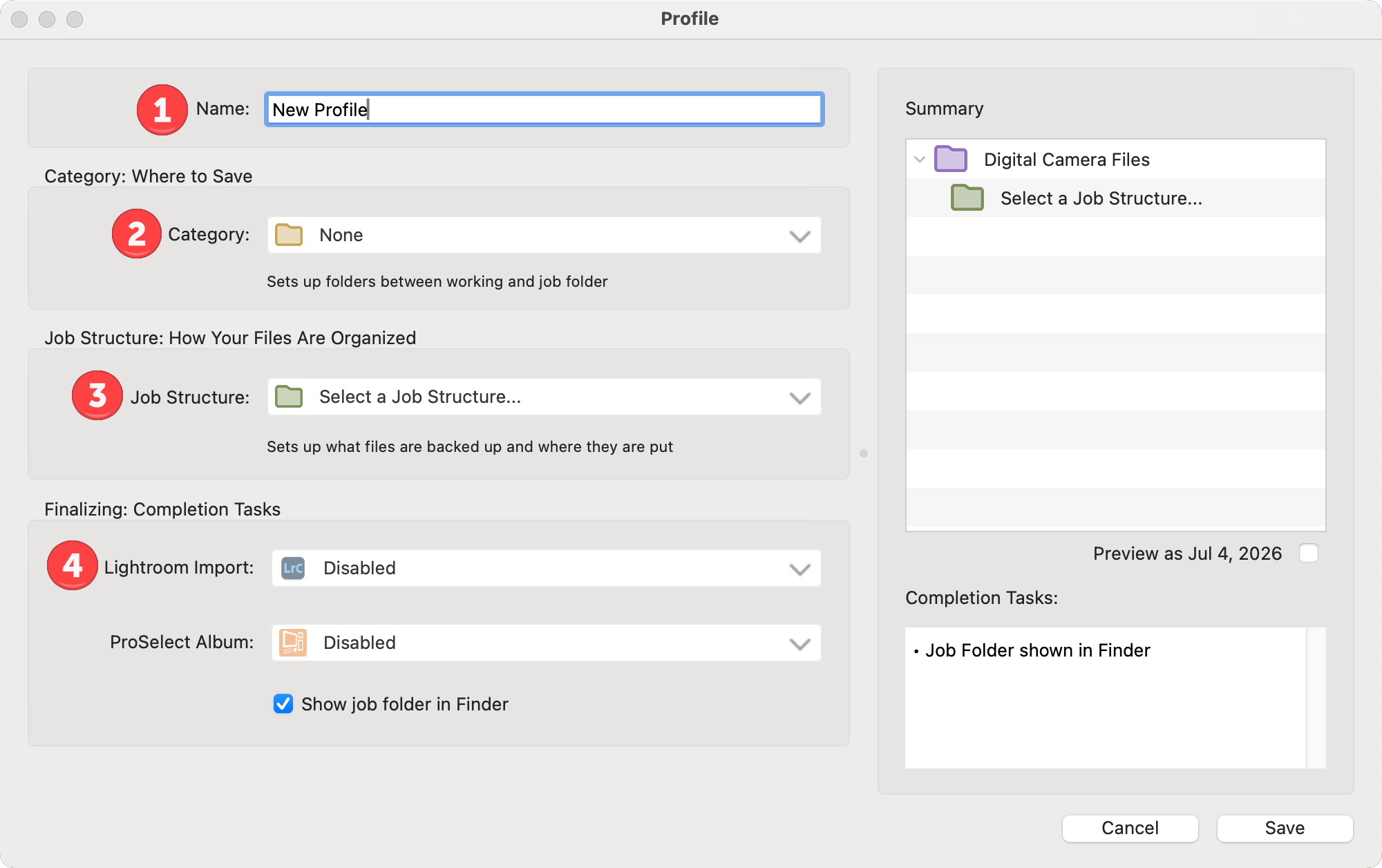 • Commercial Photography Profile: For commercial shoots, your profile might organize images into folders based on the date.  Renumbering may not be necessary.