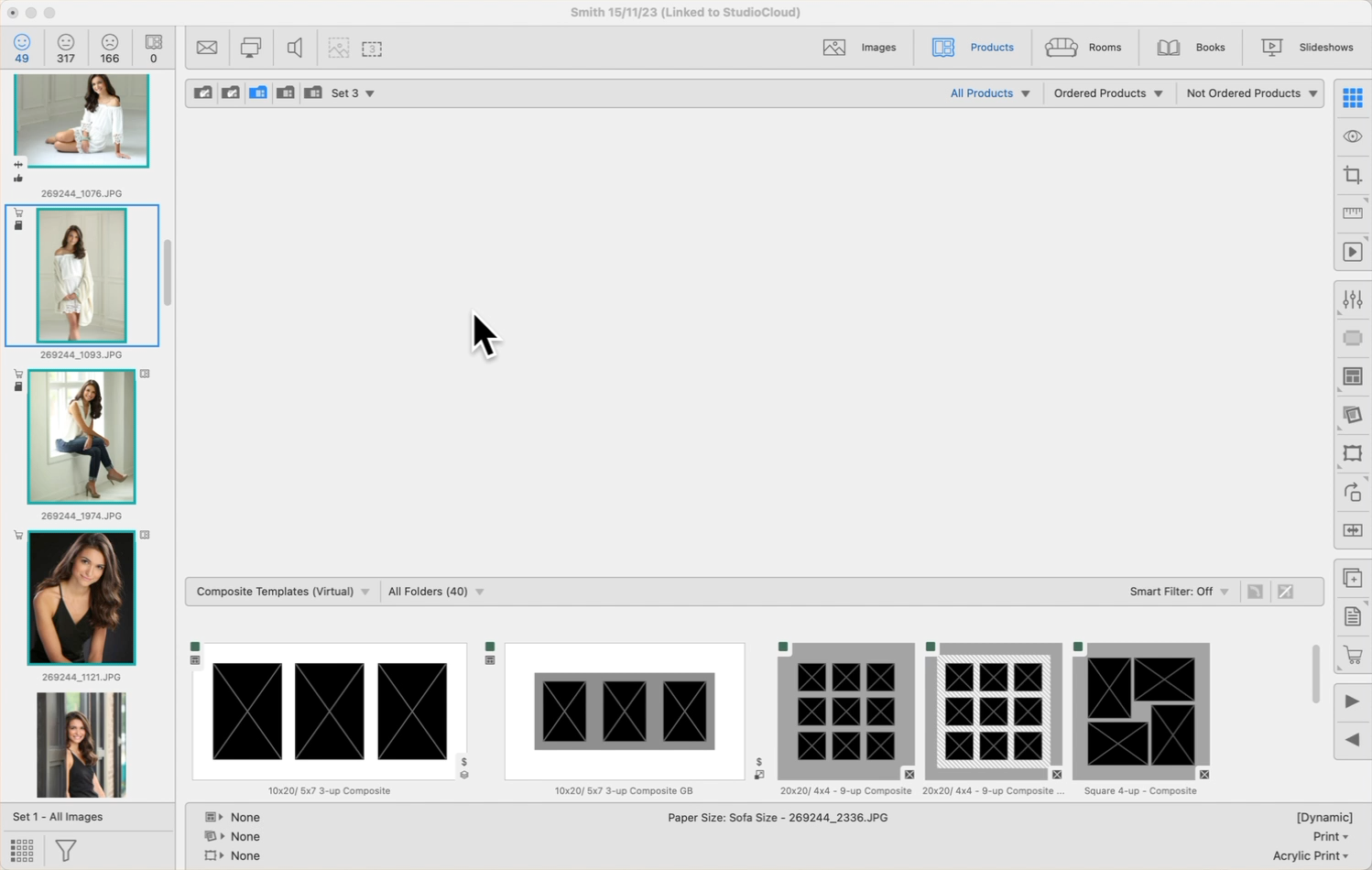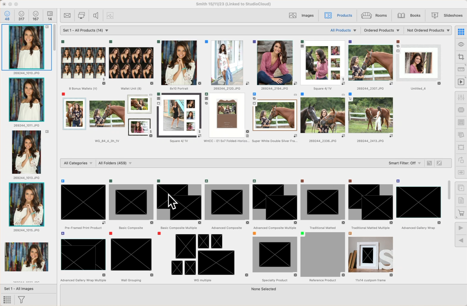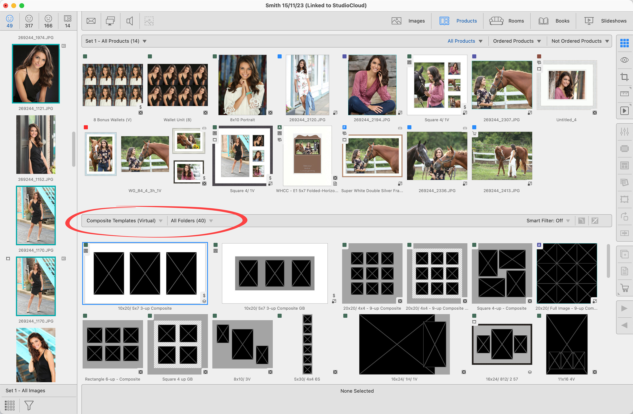 The Smart Filter displays templates from the selected Category that match the number of openings—and optionally the same orientation—as the number of images you have currently selected in the image list. This ensures that you are only shown product templates that are applicable to your current selection, streamlining the process of matching images to templates.