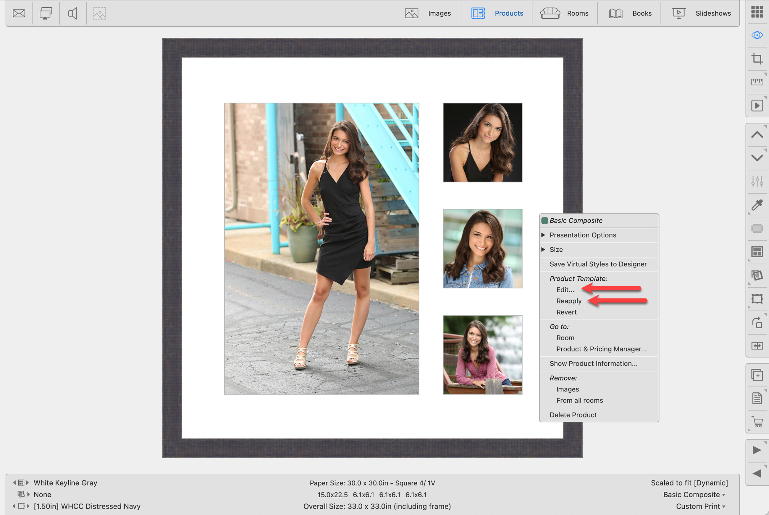 Even after you populate a template with images, you can make adjustments to the product template.