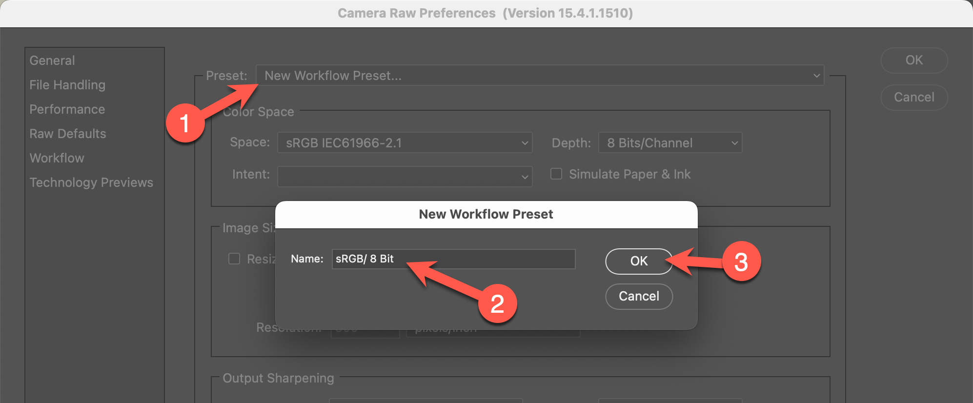 - Type either "sRGB/8 Bit" or "A98/8 Bit" (depending on your chosen color space), then click OK.