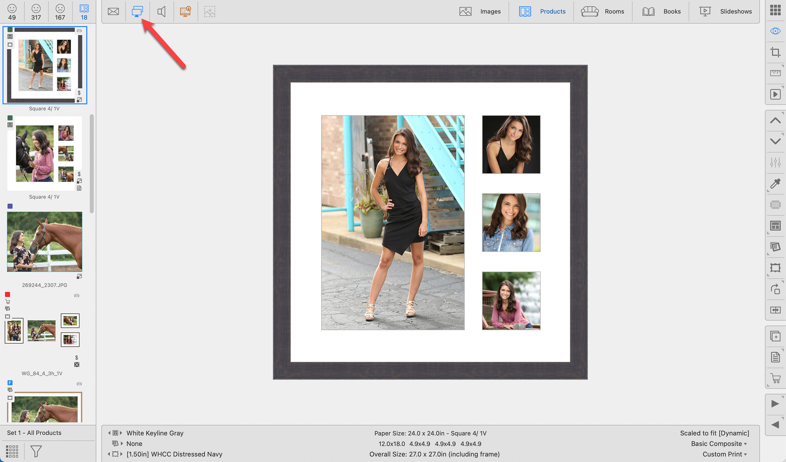 - Apply Frames, Mats, and Virtual Styles using the toolbar tools.