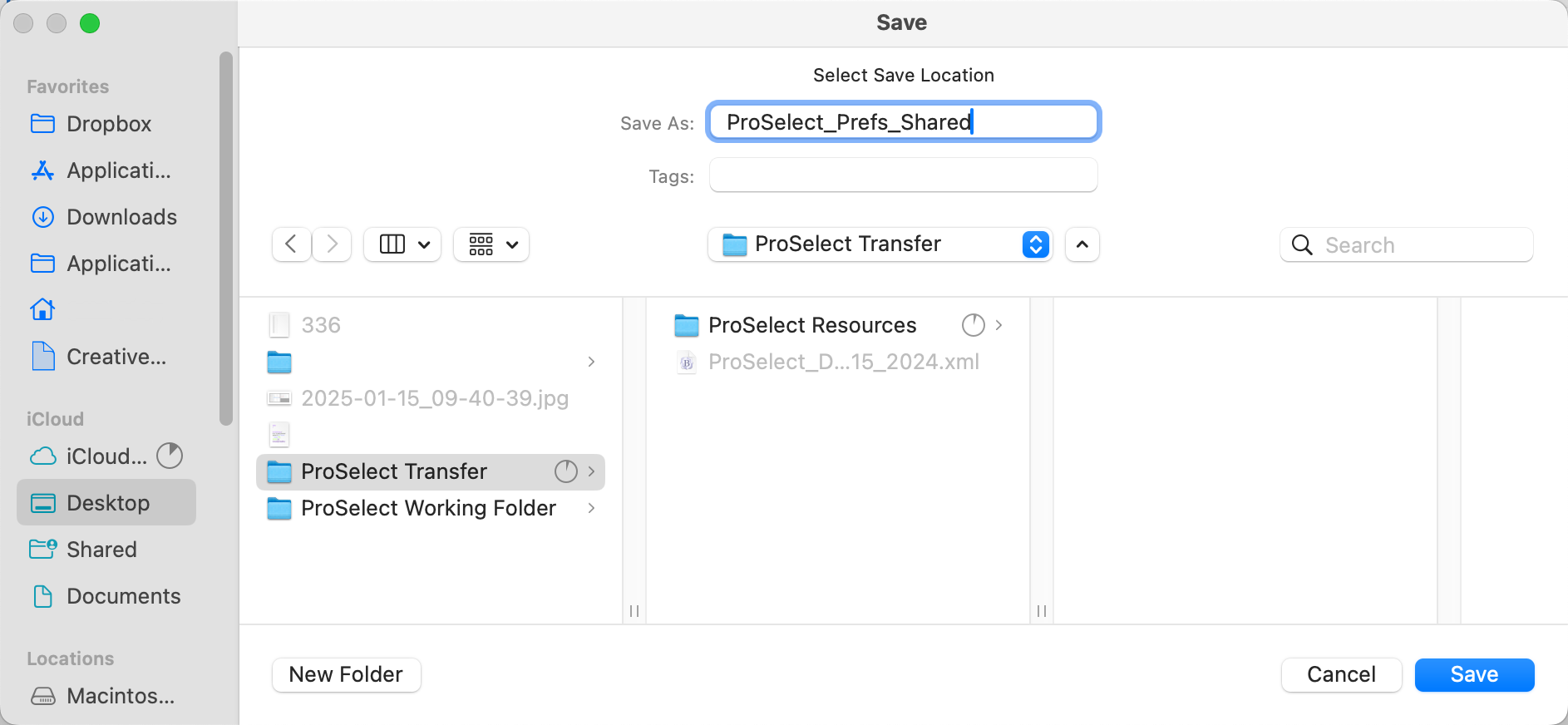 - You can now save your Settings into the same ProSelect Transfer folder with your Data File and Resource Folder.