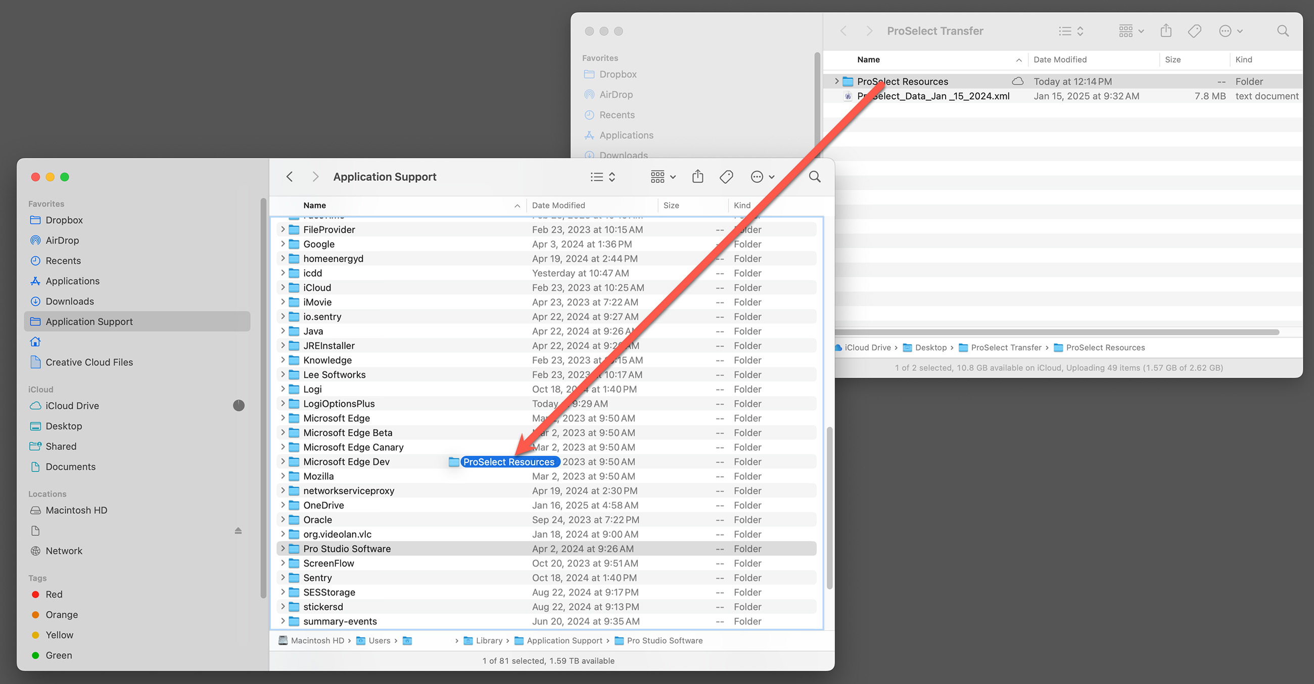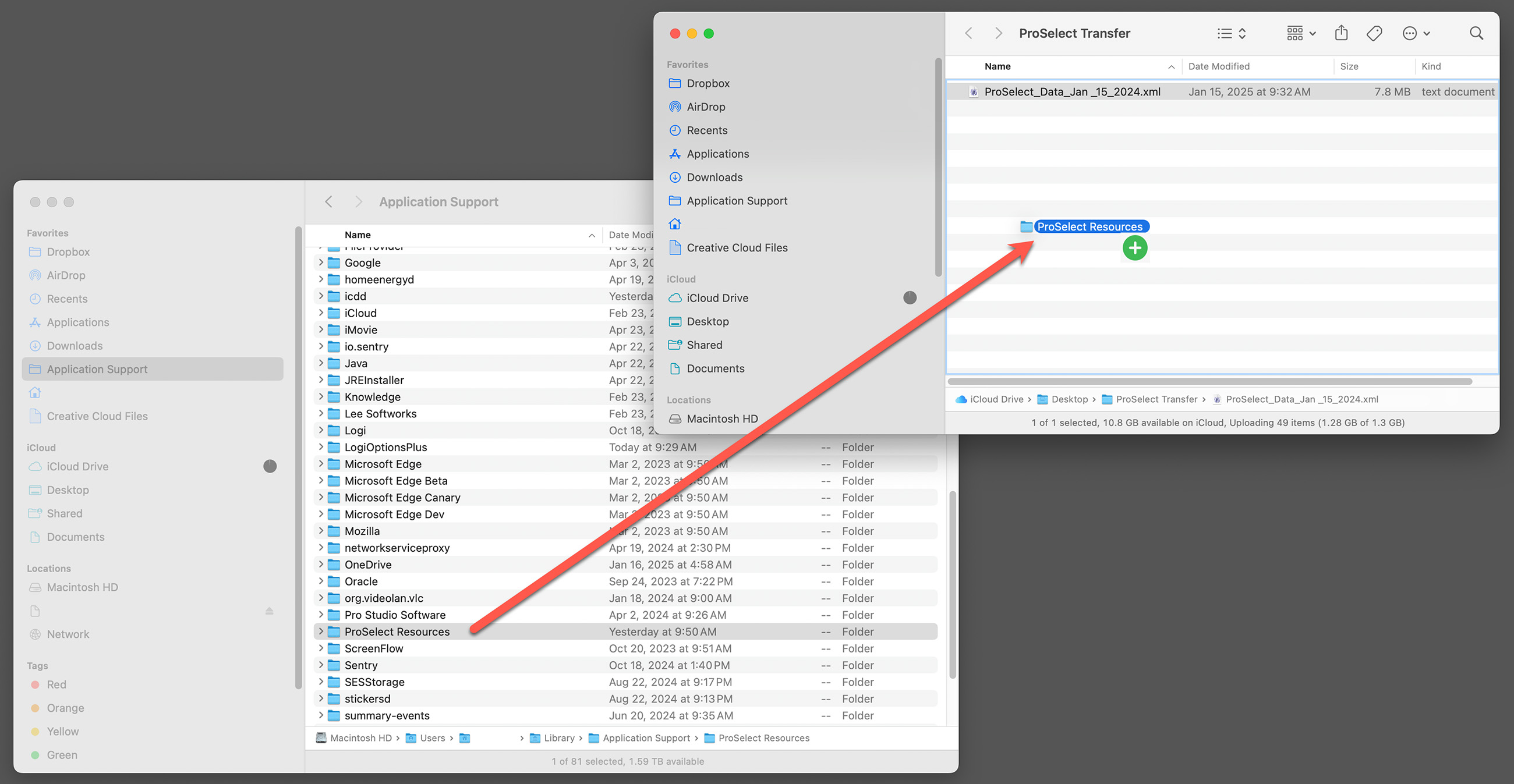 - Drag the ProSelect Resources folder from the transfer folder into its new location on the new computer.