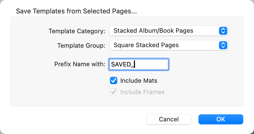 - Save Templates from Selected Pages: You can save templates from selected pages of a completed book into a new group. This feature is especially handy if you frequently use specific templates as defaults for new books. When you choose to save these templates, they are duplicated into a new folder, allowing you to maintain any virtual styles that were applied. This makes it easy to replicate your favorite layouts quickly in future projects.
