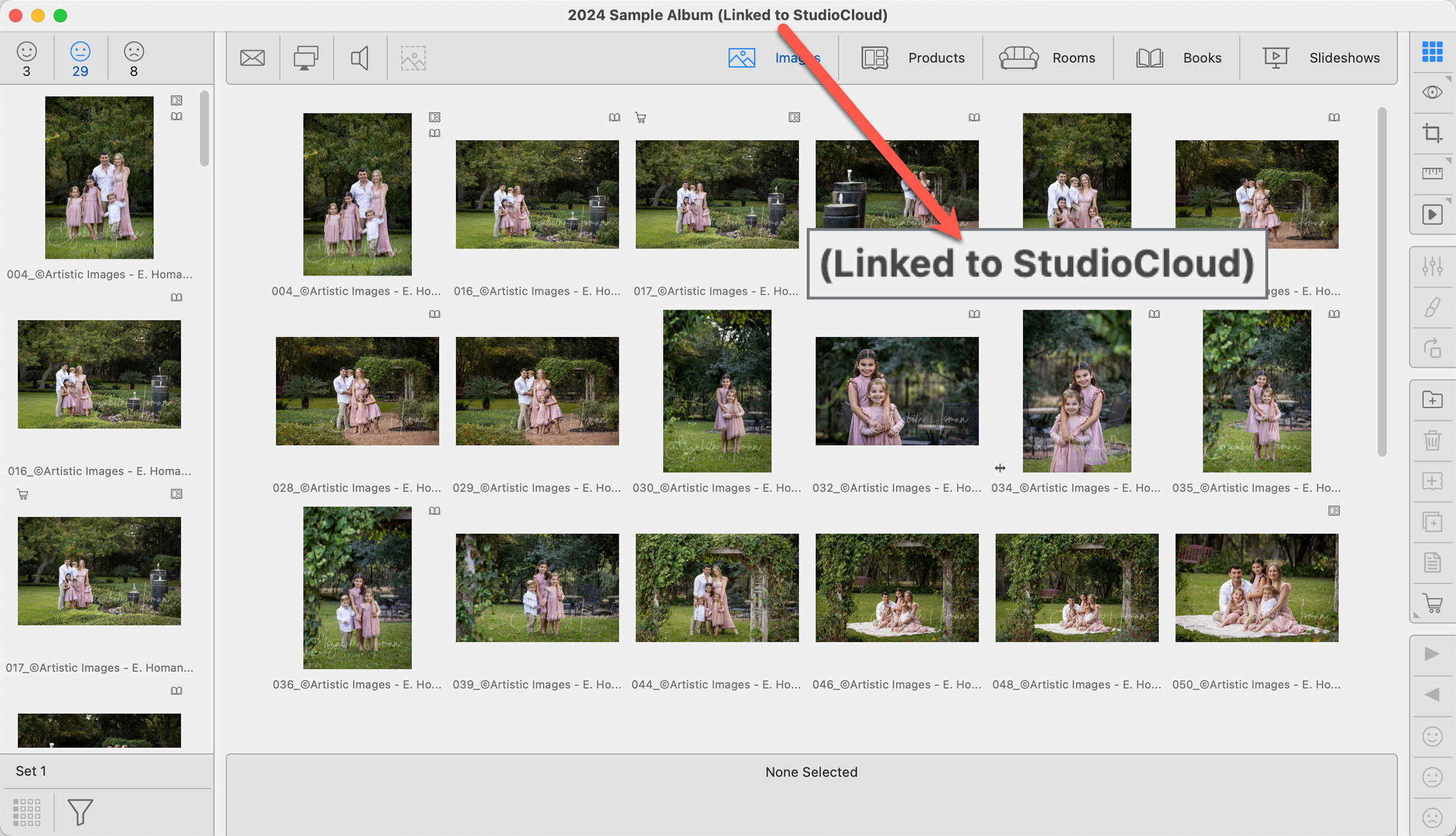- Once the album is linked, you'll see "Linked to StudioCloud" in the main window’s title bar, and the name of the linked event will appear at the top of the StudioCloud submenu under the Orders menu.