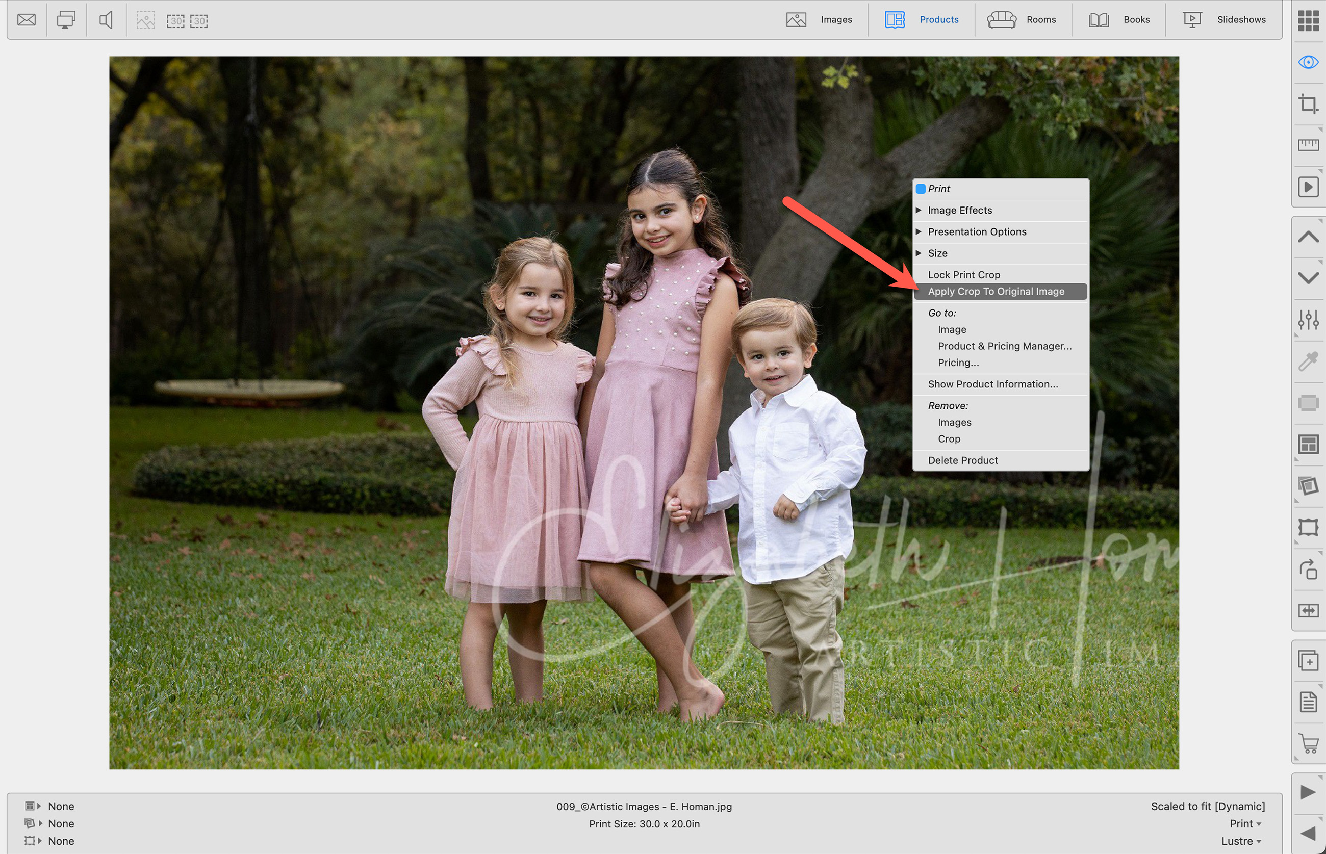 You can now apply product-specific crops, such as those set for prints, directly to your original image files. With a simple right-click on any cropped product, you can send that exact crop back to the original image. This ensures that any digital files you deliver or order match the precise crop used in the final product, maintaining consistency across formats.