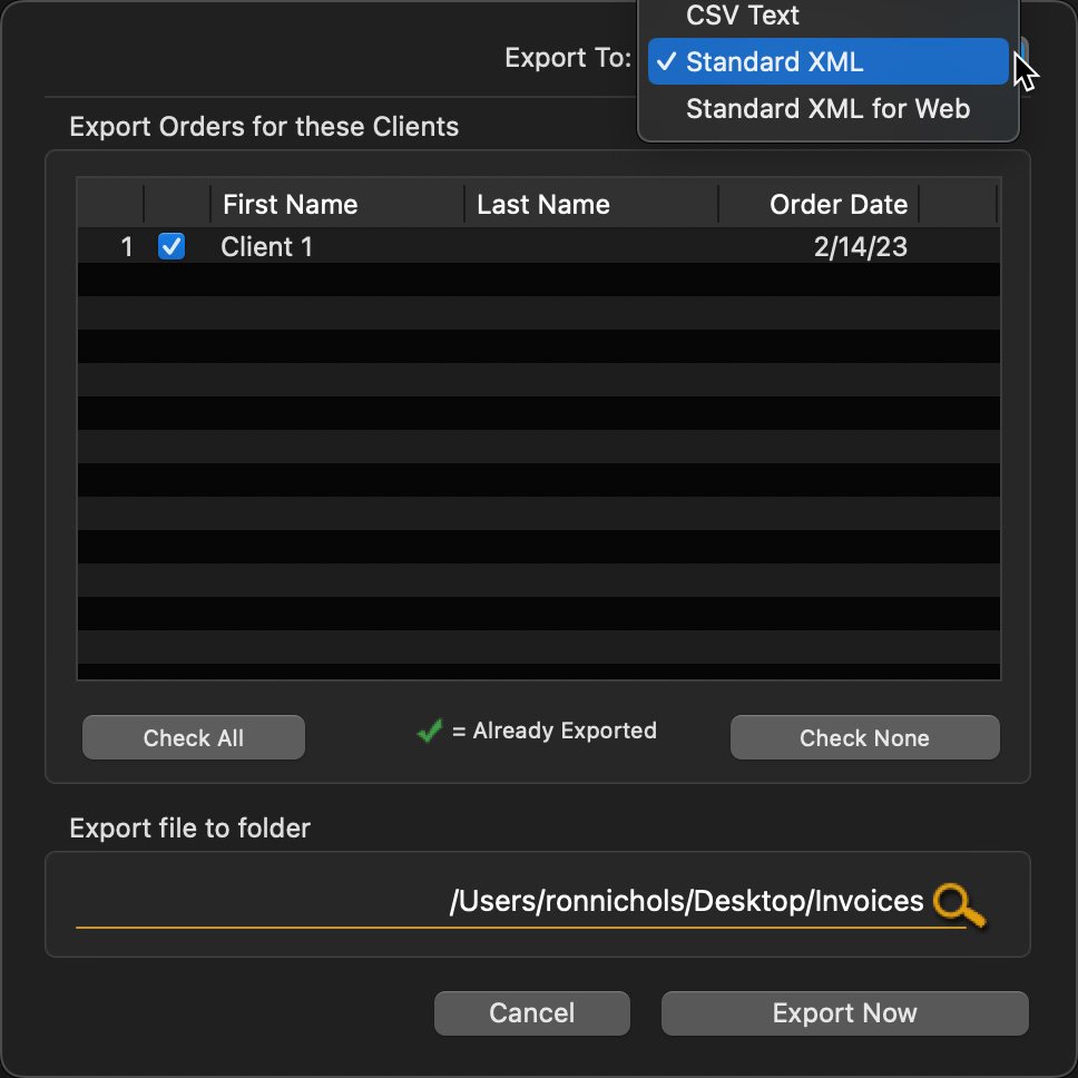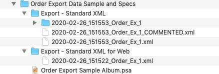 - Standard XML - This consists of an XML file containing the order data and an adjacent folder with thumbnail images of the ordered items. This format is generally used to import into desktop applications.