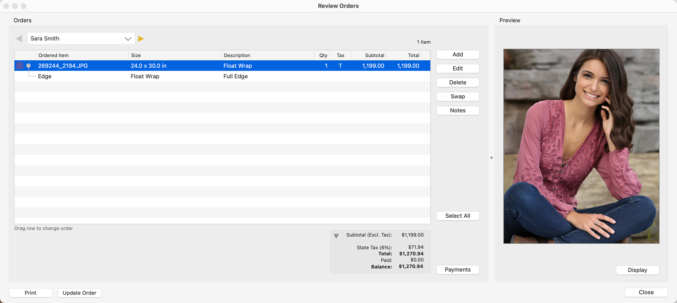 - By default, the Edge Treatment will be "Full." The Review Orders window will display as follows: