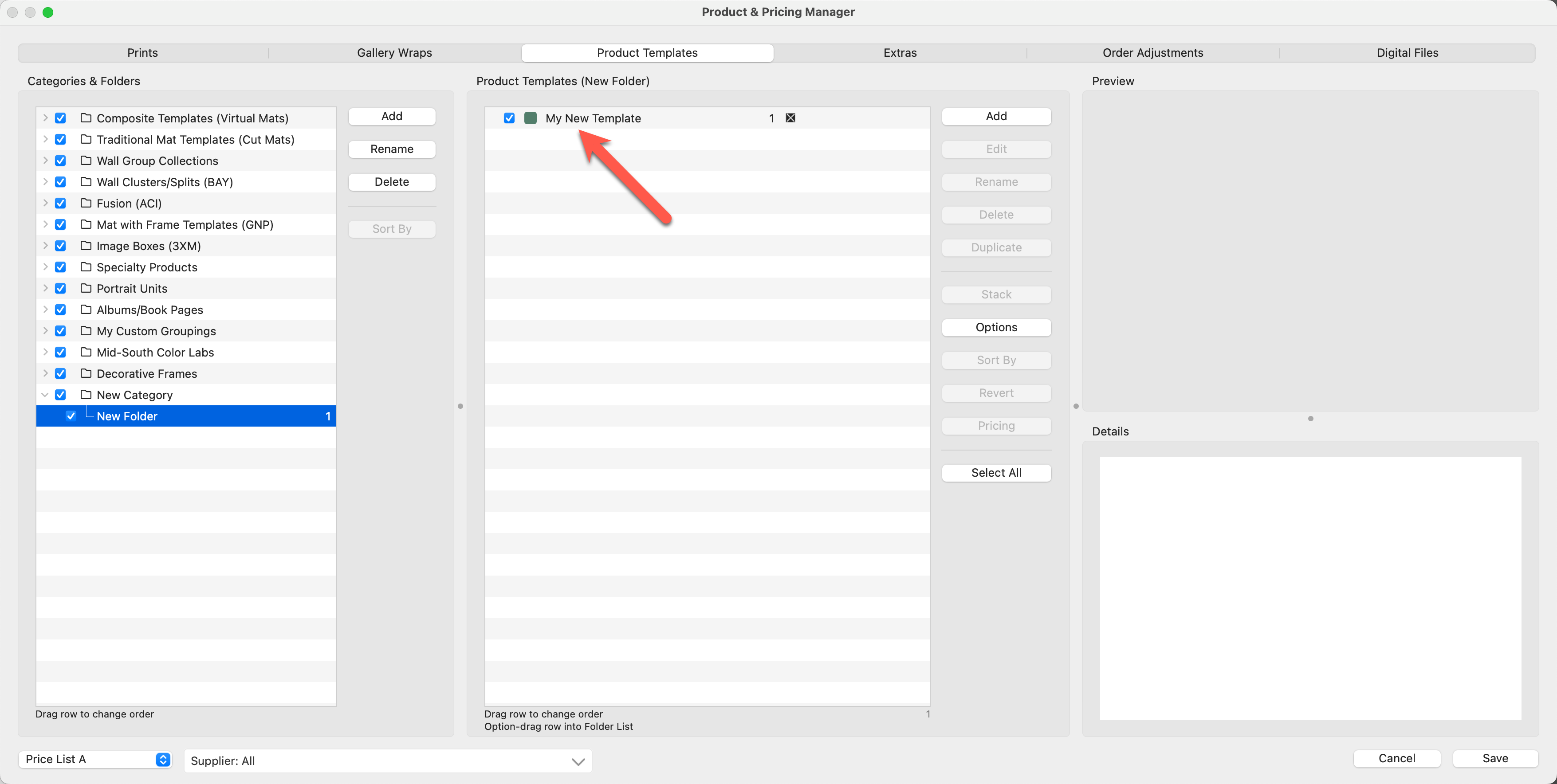 - Once you save your new template, it will appear in the Product & Pricing Manager.