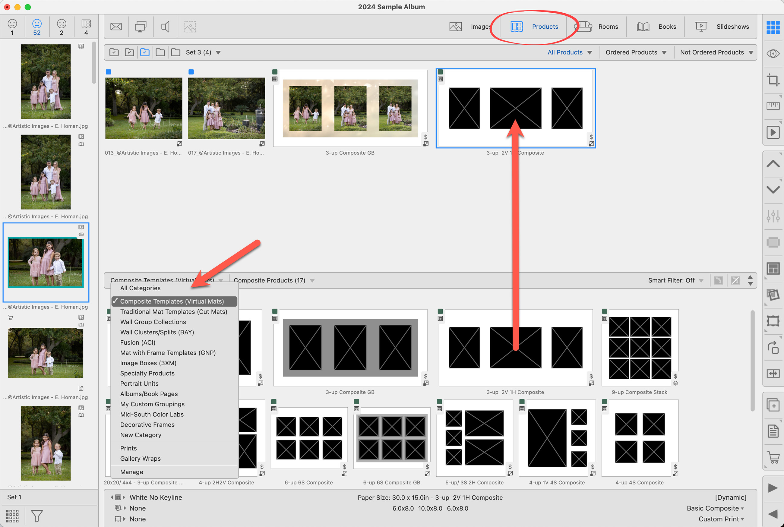 Basic Composite - Simple multi-image products allowing the use of decorative virtual styles. Also, portrait unit templates and similar (e.g., wallets).