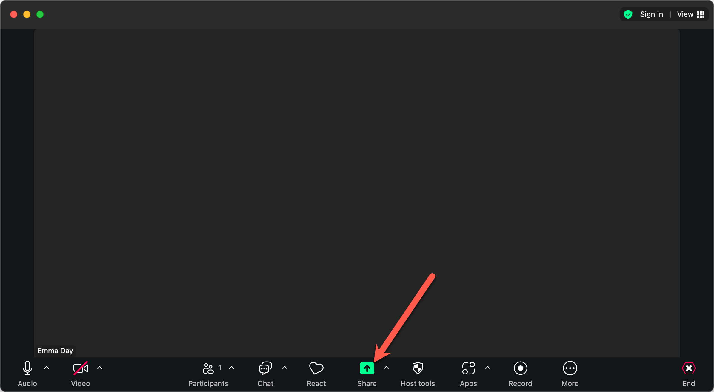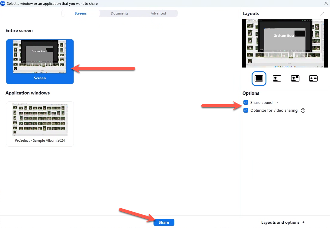 5. Share Screen: When ready to share, click "Share" in Zoom.