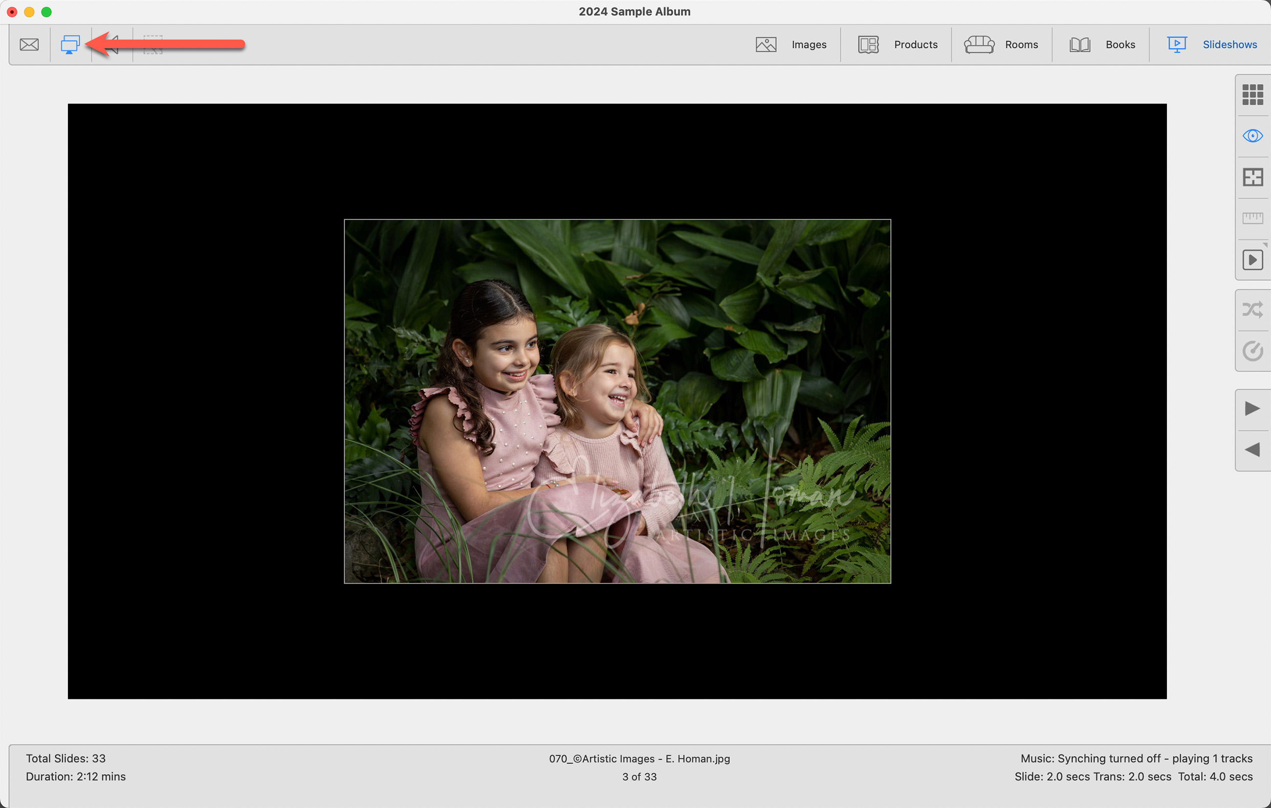 3. Turn on Presentation Mode: In ProSelect, click on the Presentation Mode button .