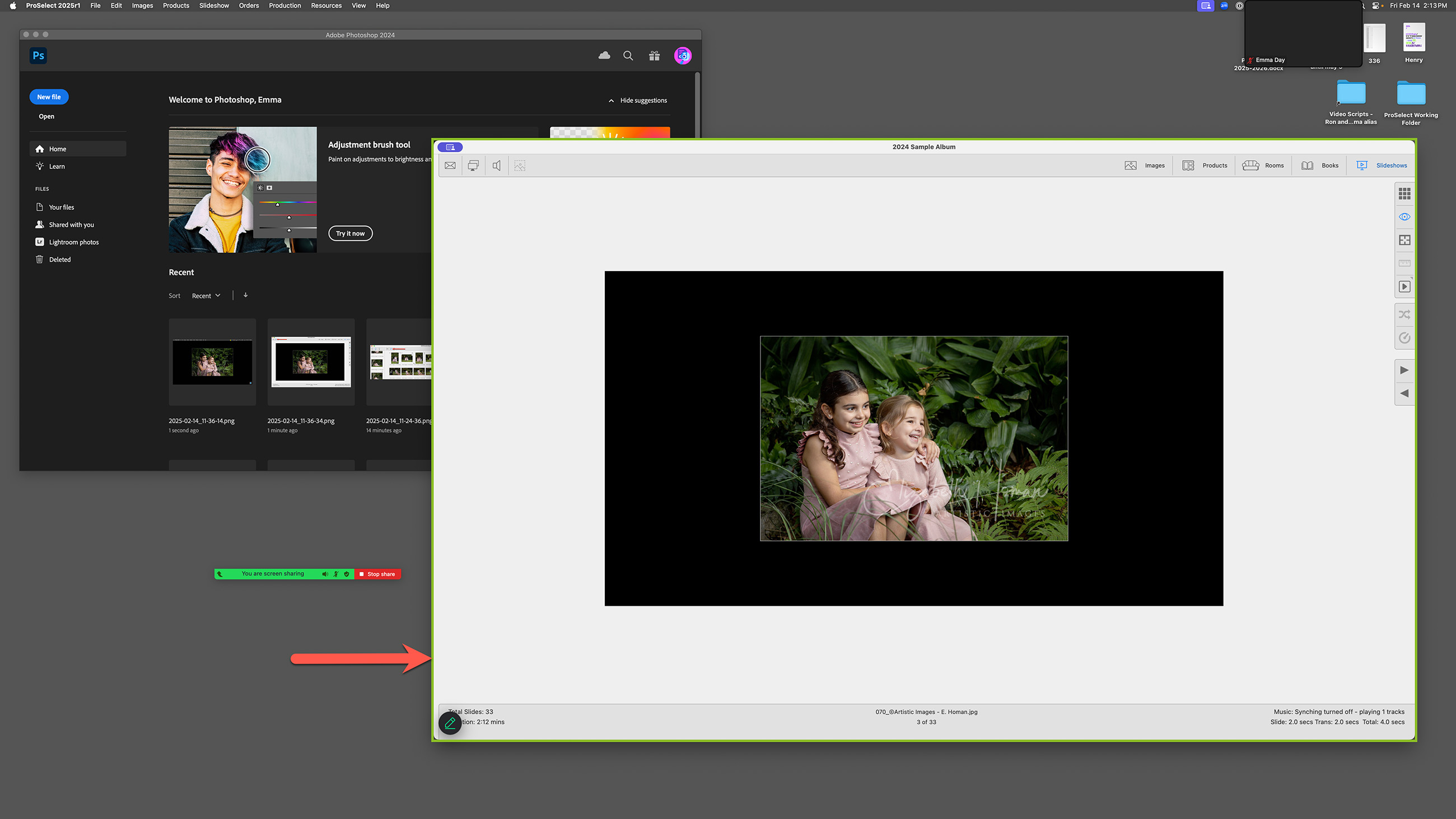 5. Your entire computer screen, including ProSelect and any slideshows, will be visible to your client.