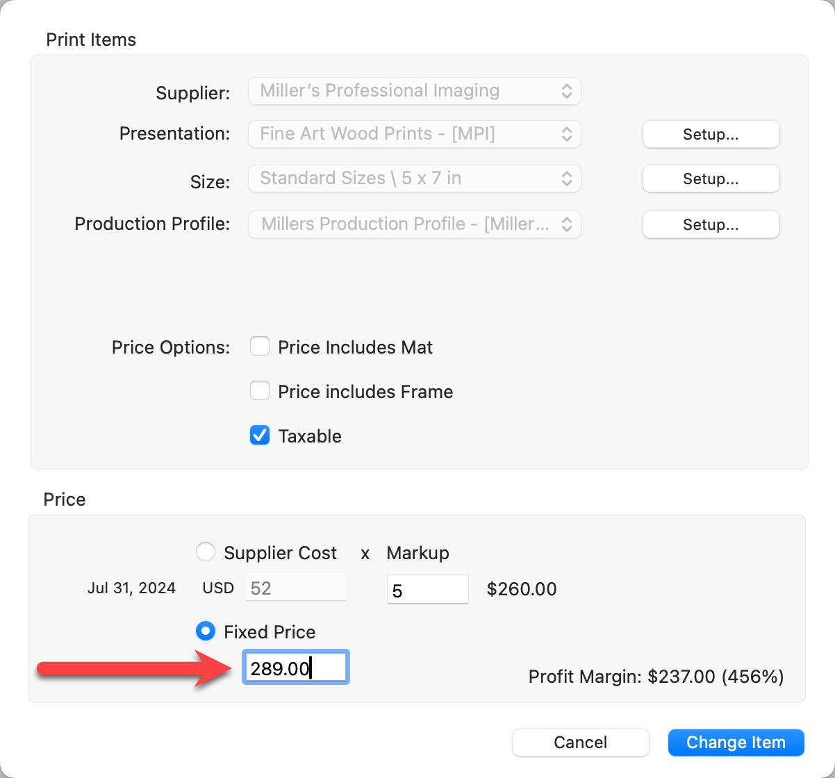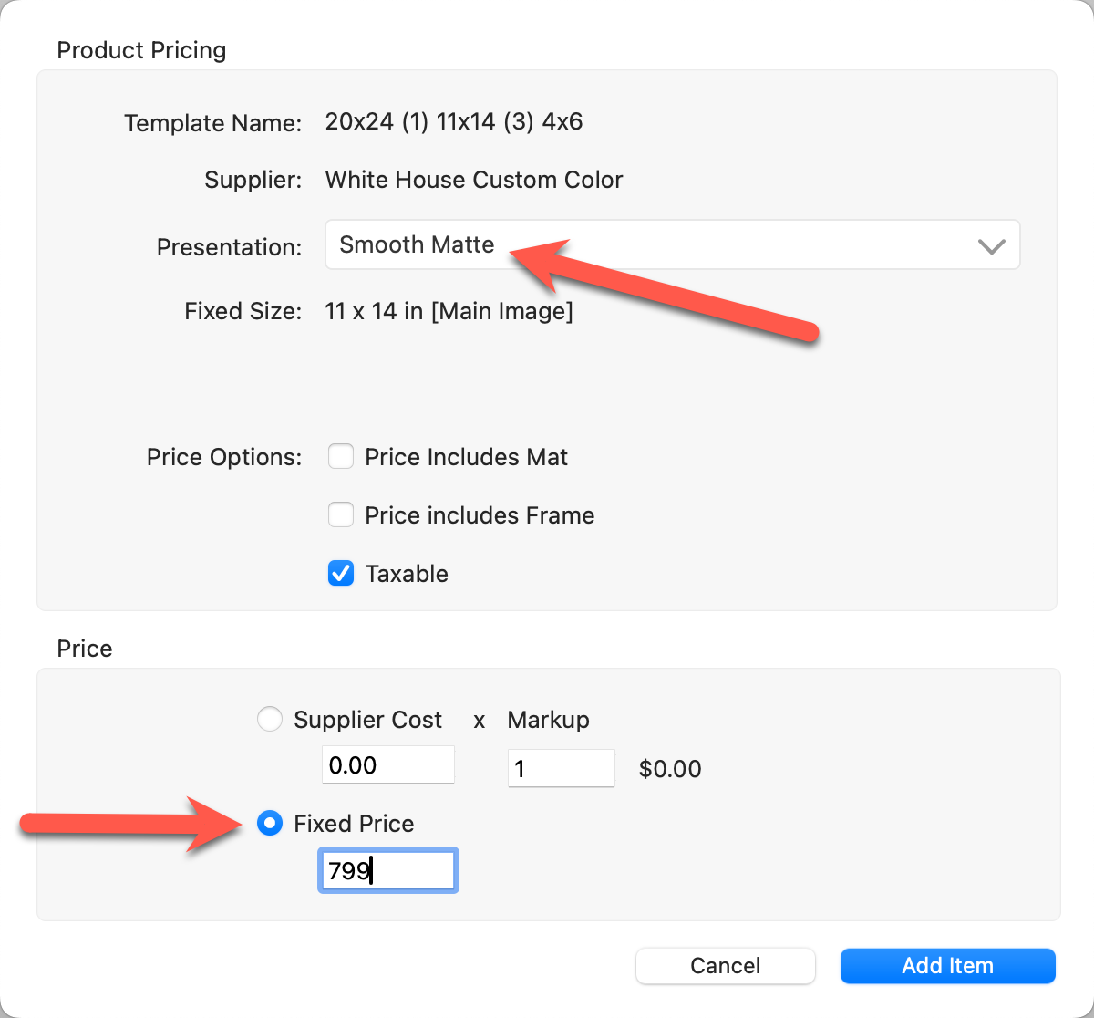 10. Price the item using either Supplier Cost x Markup or Fixed Price.
