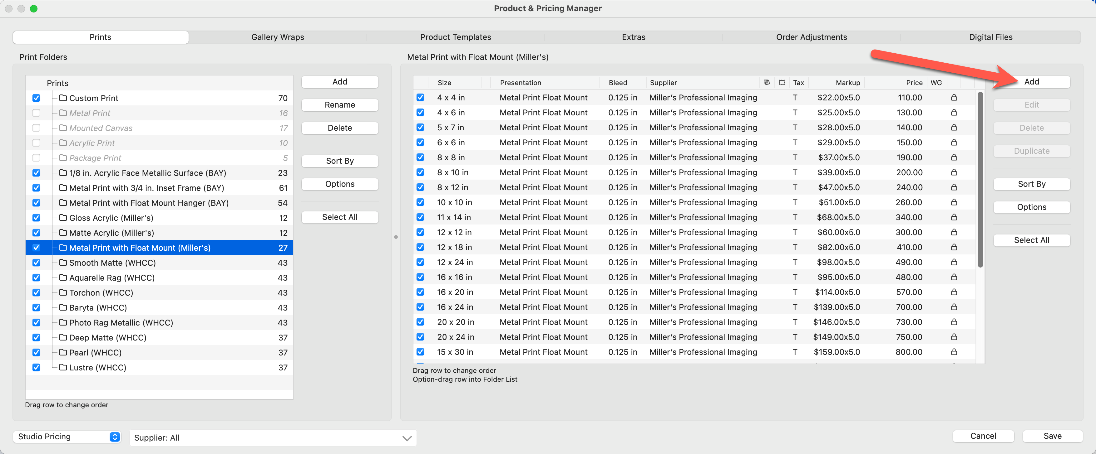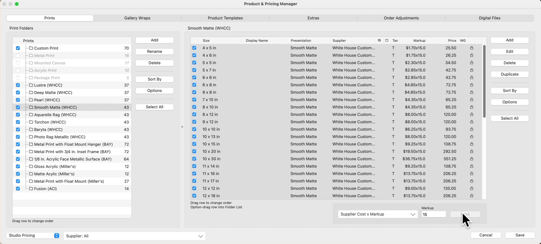 3. Use the Select All button to change the markup value of ALL the prints within the folder.