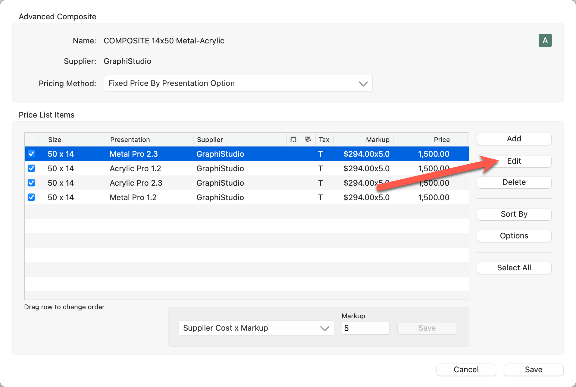 4. Change the markup value in the "Markup" box below the Pricing panel.