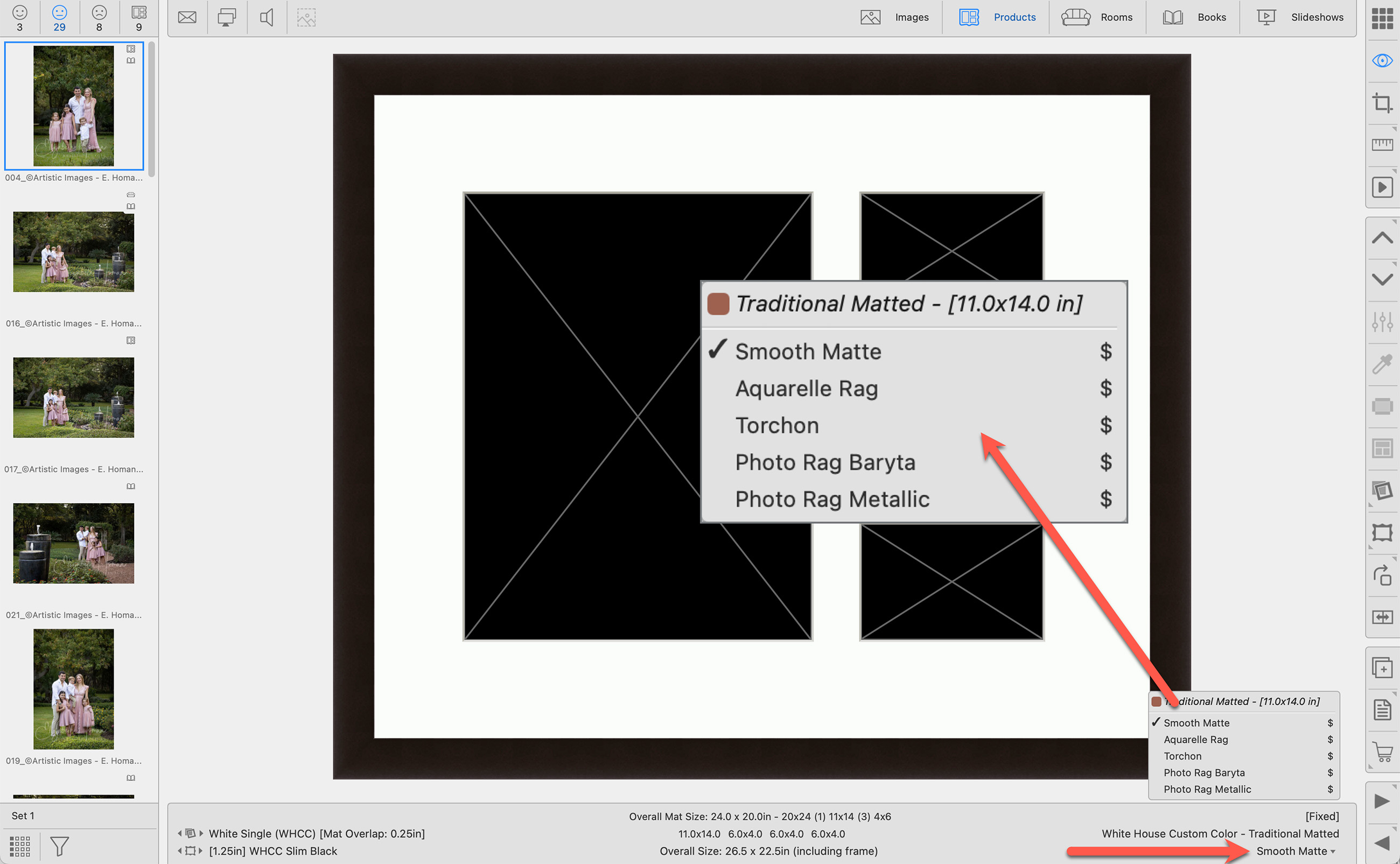 The Matted Products Collection from WHCC was downloaded and installed.  Once installed, the collection needs to be priced.