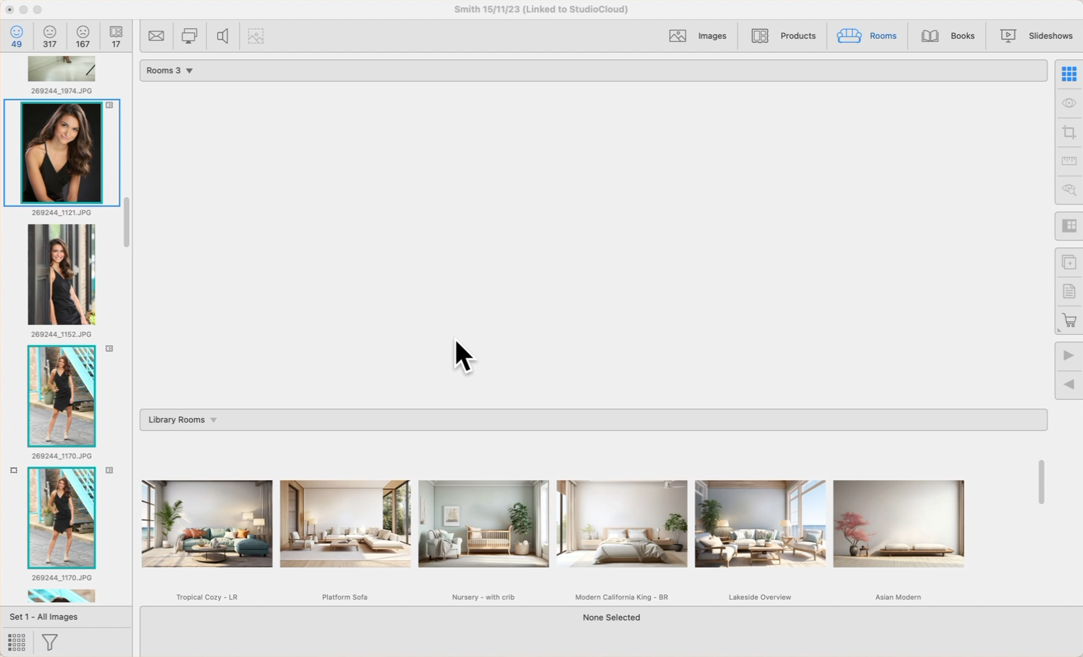 - Double-clicking on a room template in the Room Resource Area will take you directly to Show view. From there, you can drag and add images or products into the selected room.