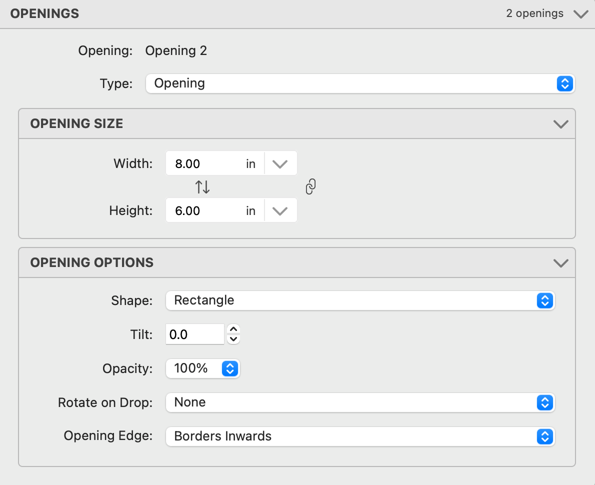 - Shape: Click on the drop-down menu to change the shape of an opening.
