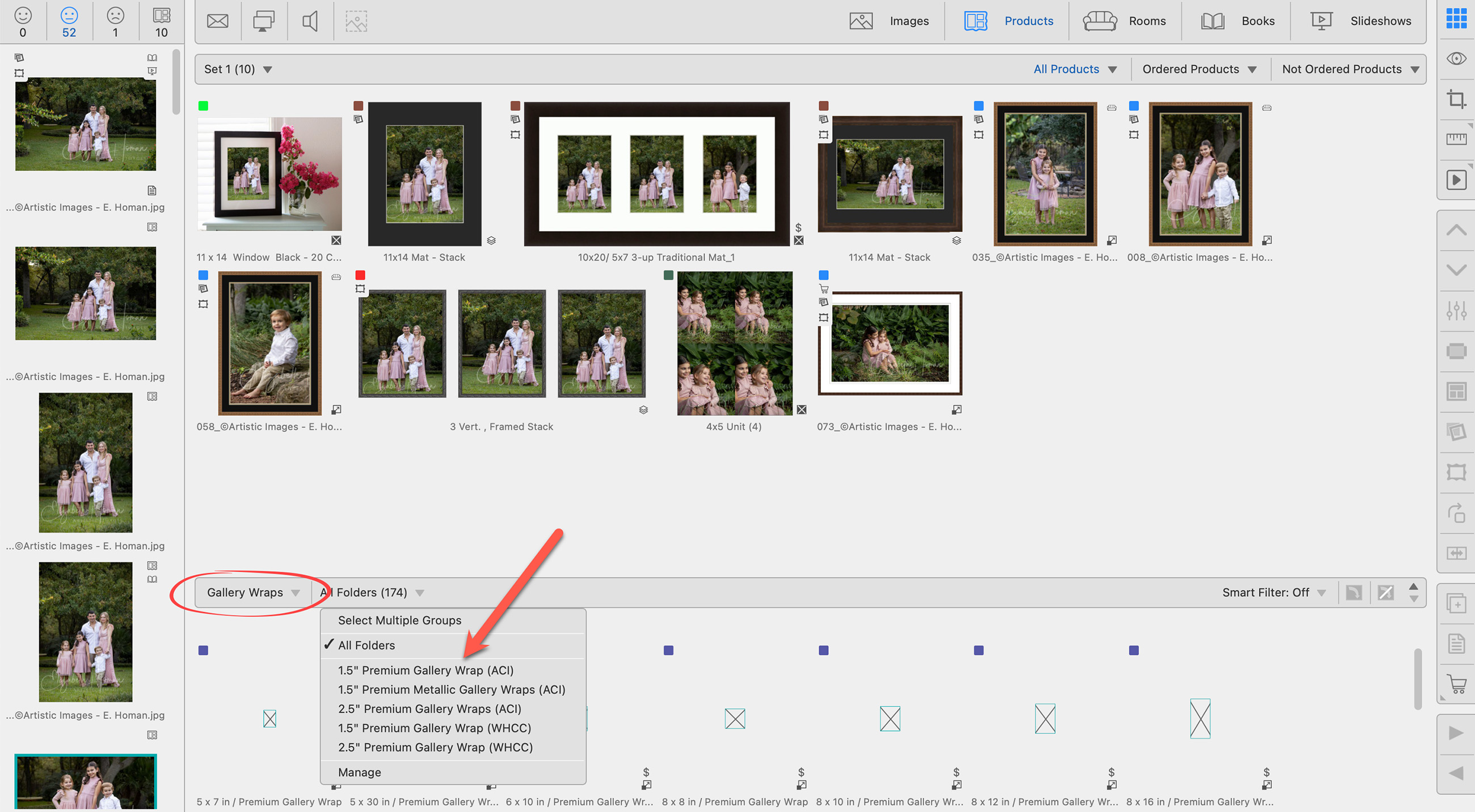 All of the gallery wraps created in the Product & Pricing Manager will appear in the template resource area. Drag a template into the main working area and populate it with an image.