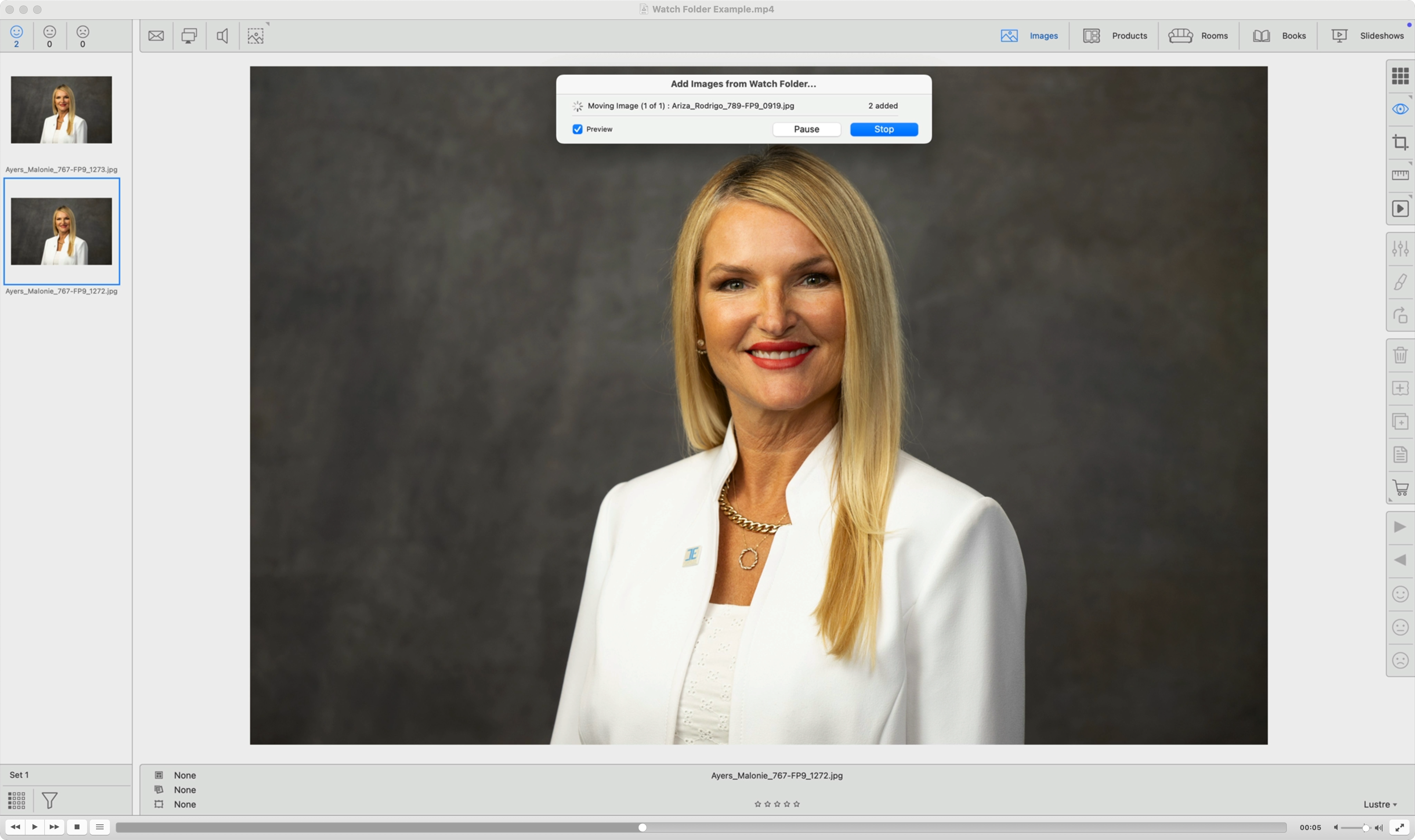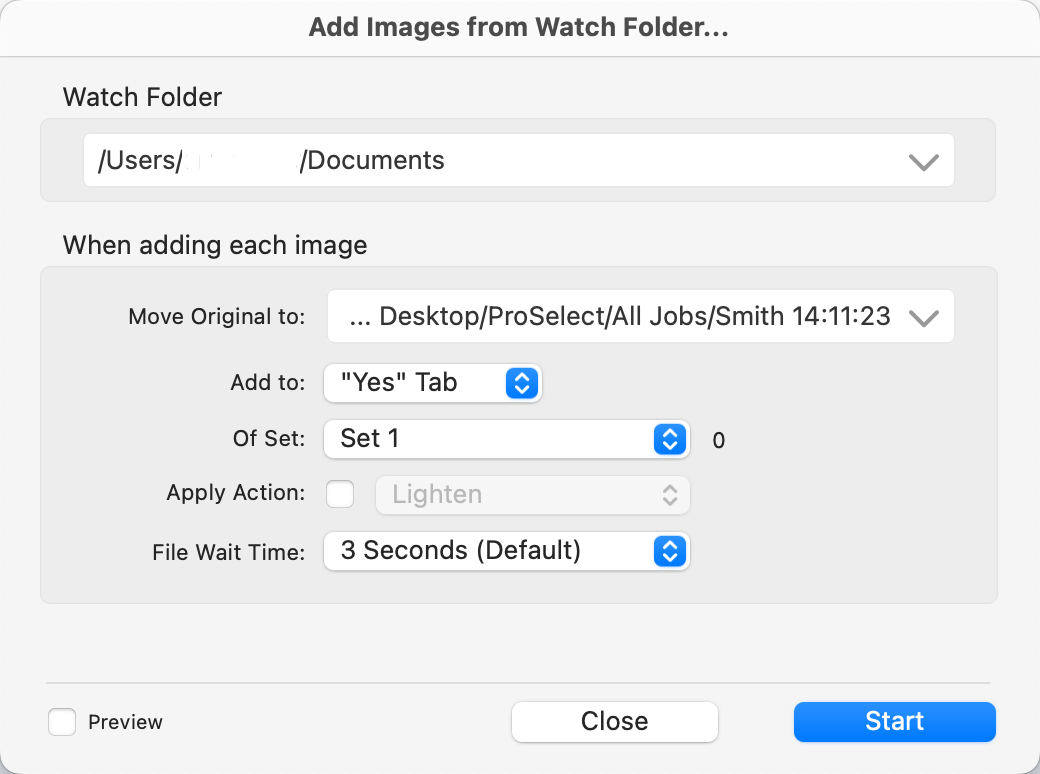 ProSelect (Pro version only) provides the ability to automatically add images from a specified Watch Folder into the currently open ProSelect album. This can be used for tethered shooting and where you wish to show images in ProSelect after each shot.
