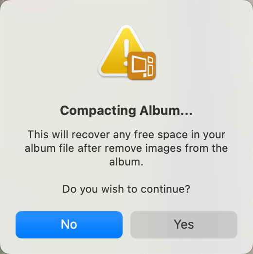 To free up space in your album, consider compacting it after deleting images. This step is generally unnecessary unless you've removed a significant number of images and wish to recover the space. On the top menu, go to File > Compact Album.