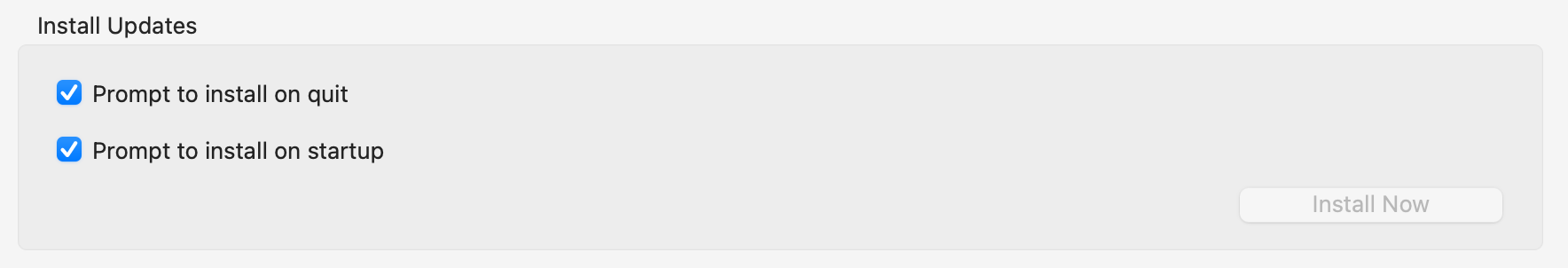 • Prompt to install on quit: Check this box to have ProSelect prompt you to install a downloaded software update when you quit the program.