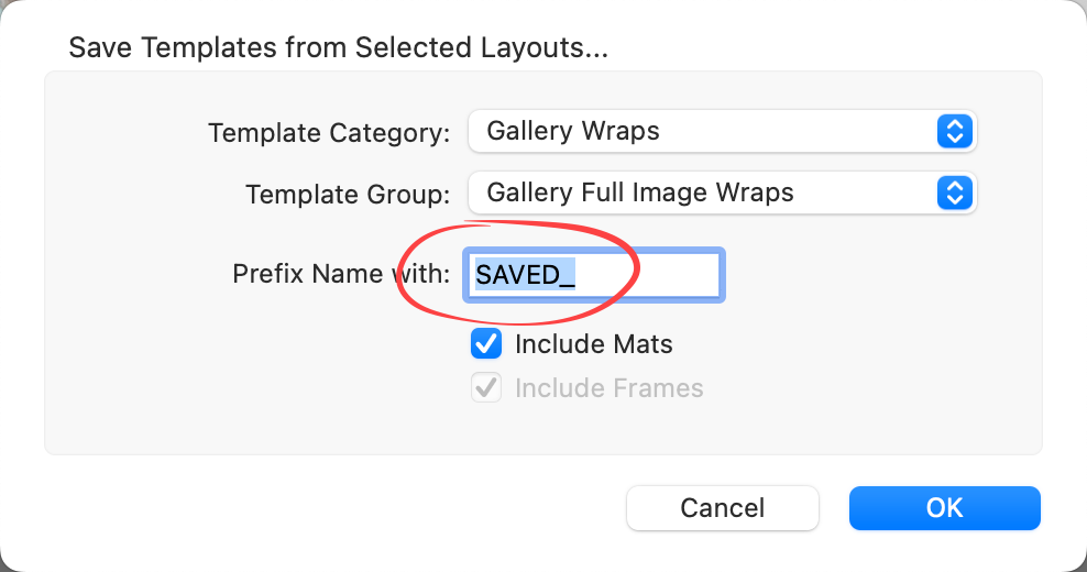 - Select whether you want to save the applied mats or frames.