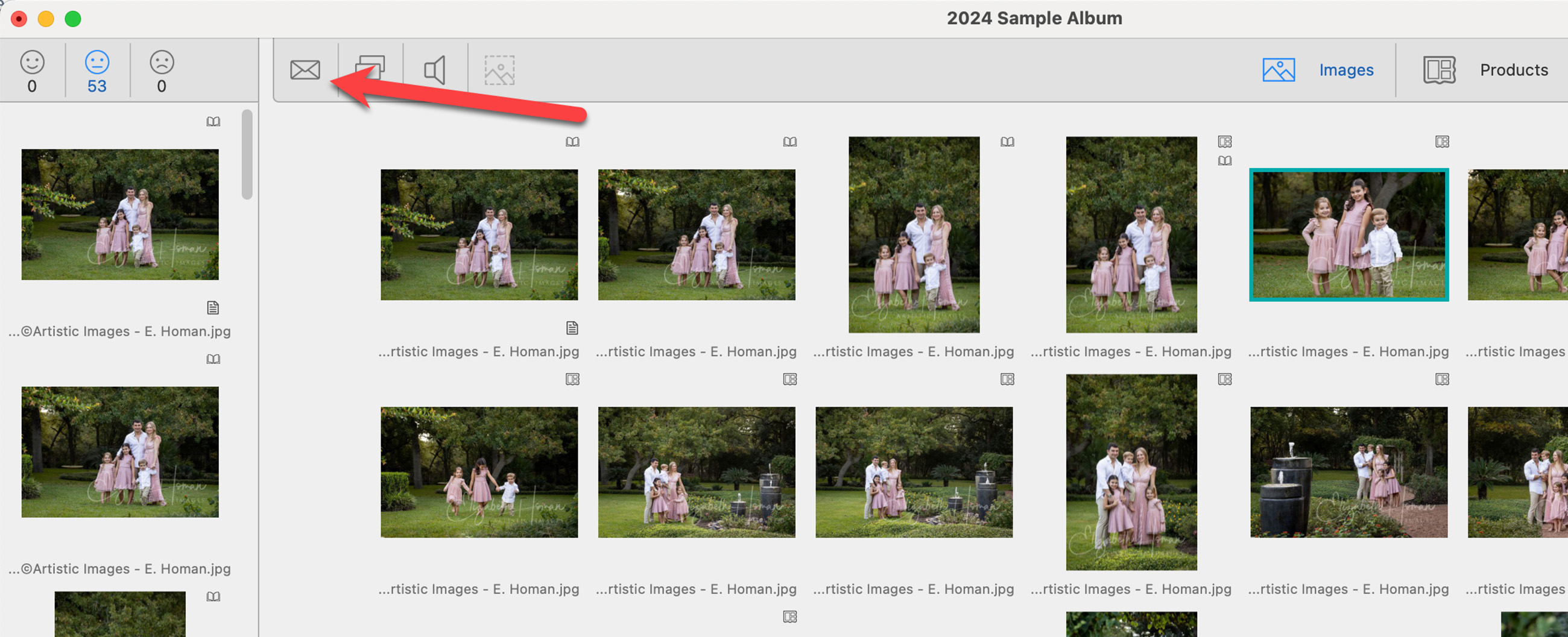 When connected to the internet, ProSelect automatically checks for new messages. Any unread messages will be indicated by a number on the Envelope