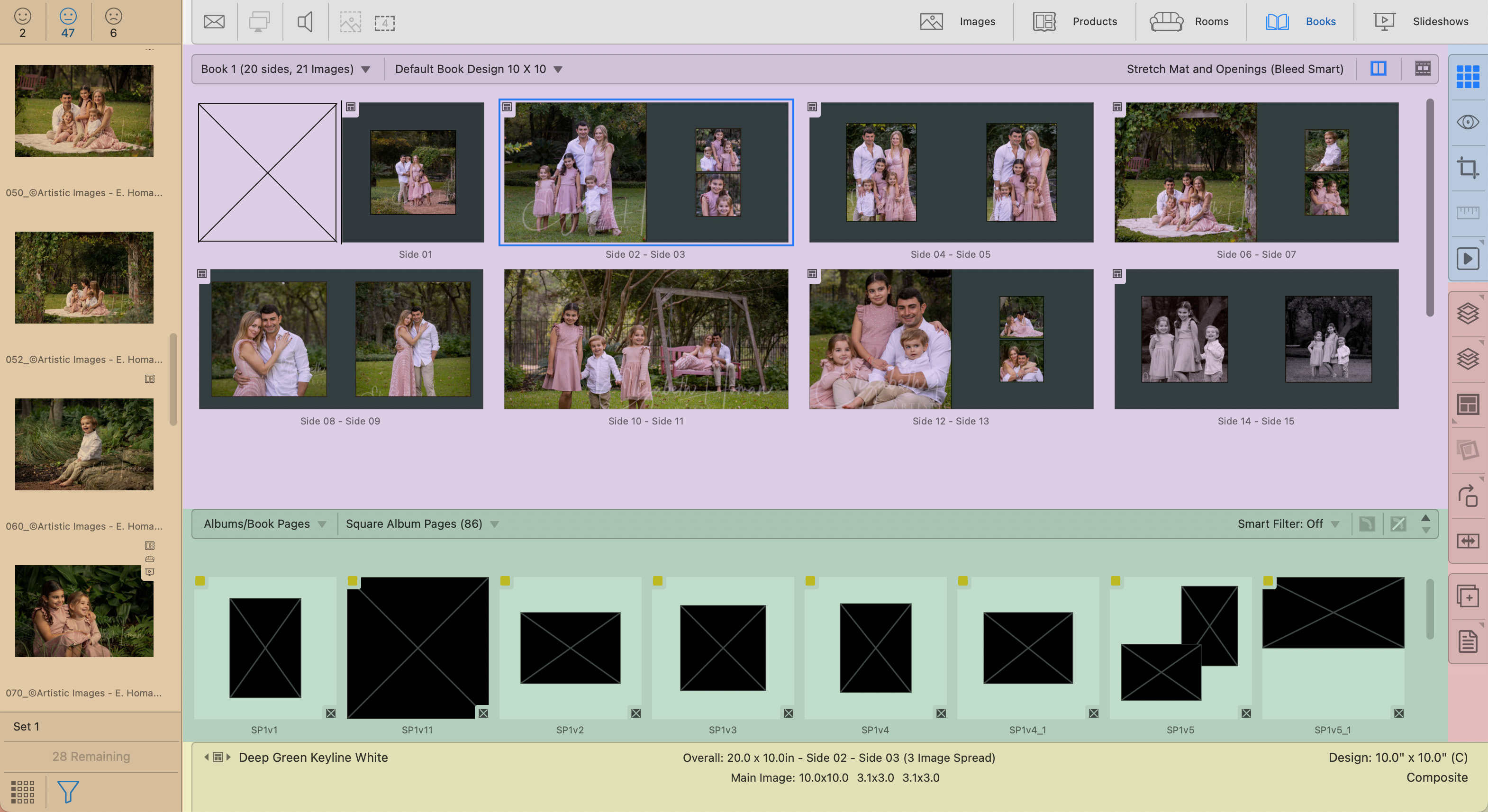 Use the Image List to access all available images in the album. You can drag and drop images into Product Templates, Book Page Templates, and Rooms.
