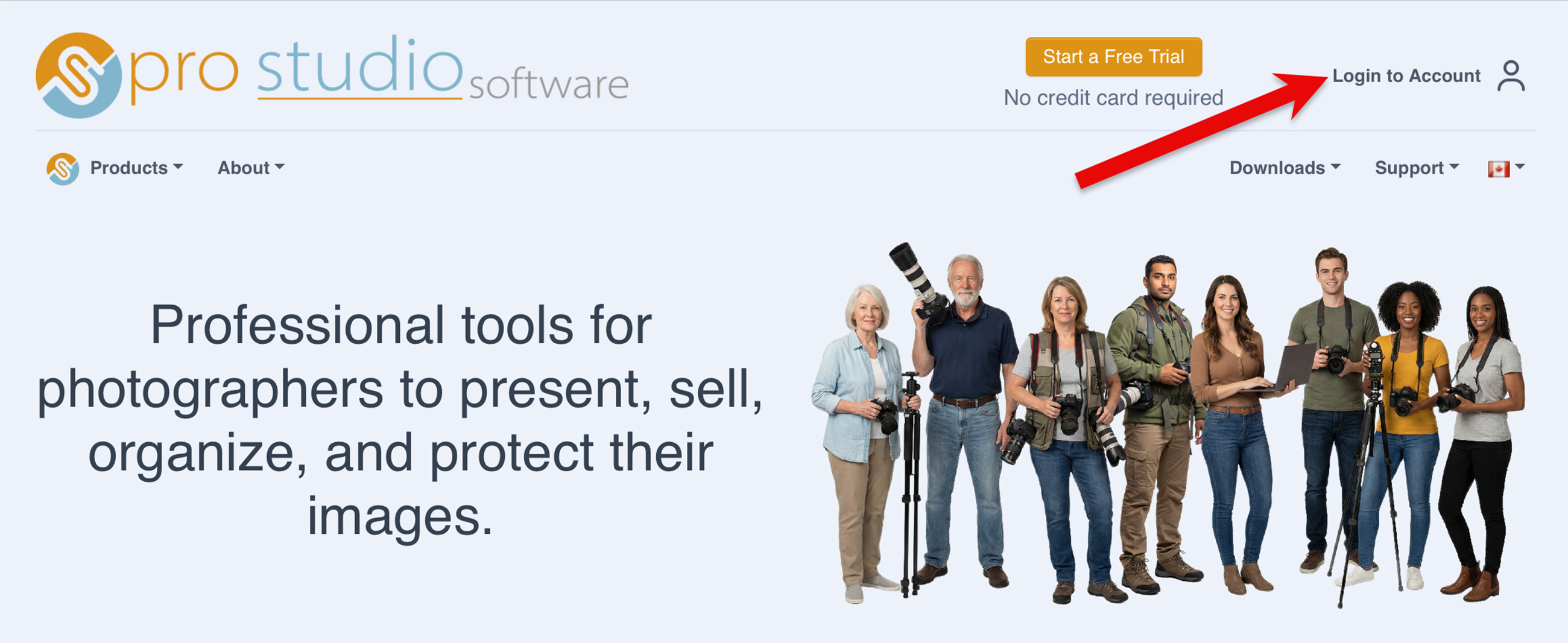 - Using the computer where you want to install the software, log in to your account at ProStudioSoftware.com by clicking the person icon on the menu bar. All system downloads require you to be logged into your account. Use your email address and password to log in.