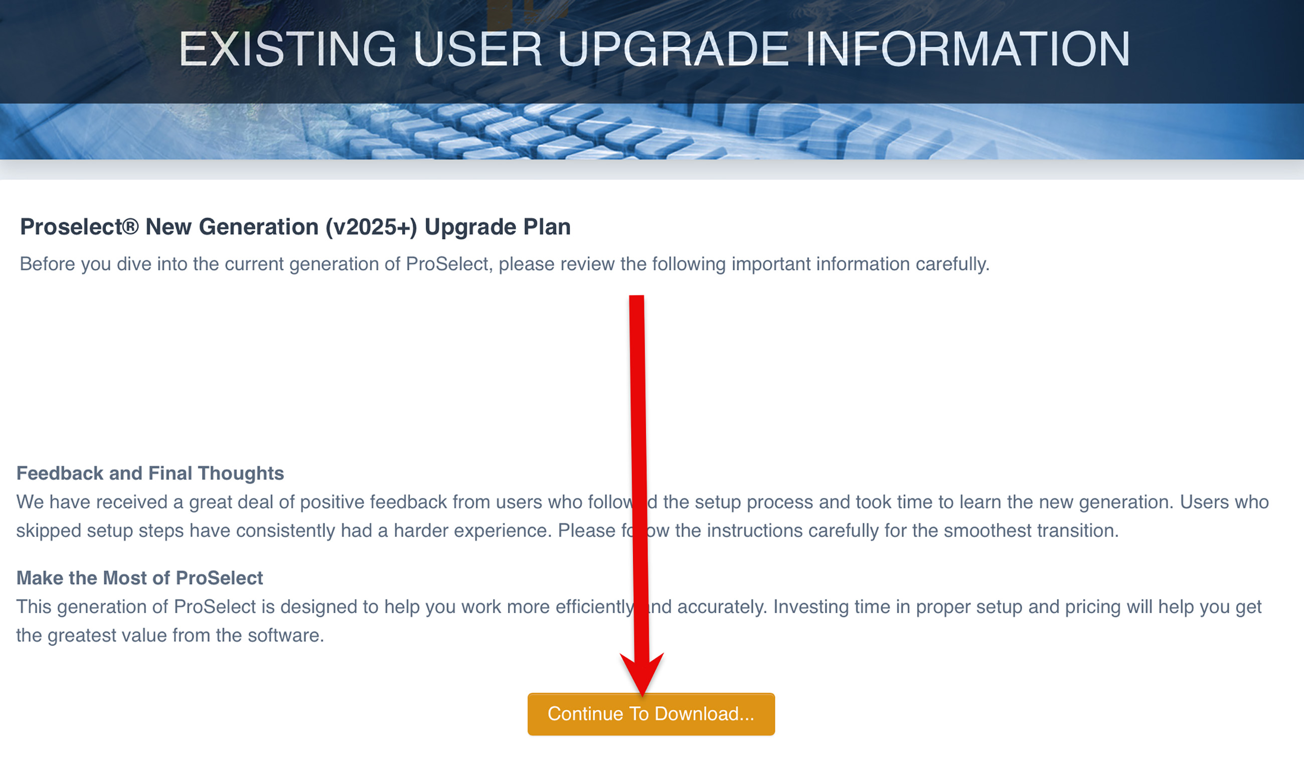 - Existing User Upgrade Information. If you are an existing ProSelect user and are upgrading, please take the time to read the upgrade information. Scroll to the bottom to continue to the download.