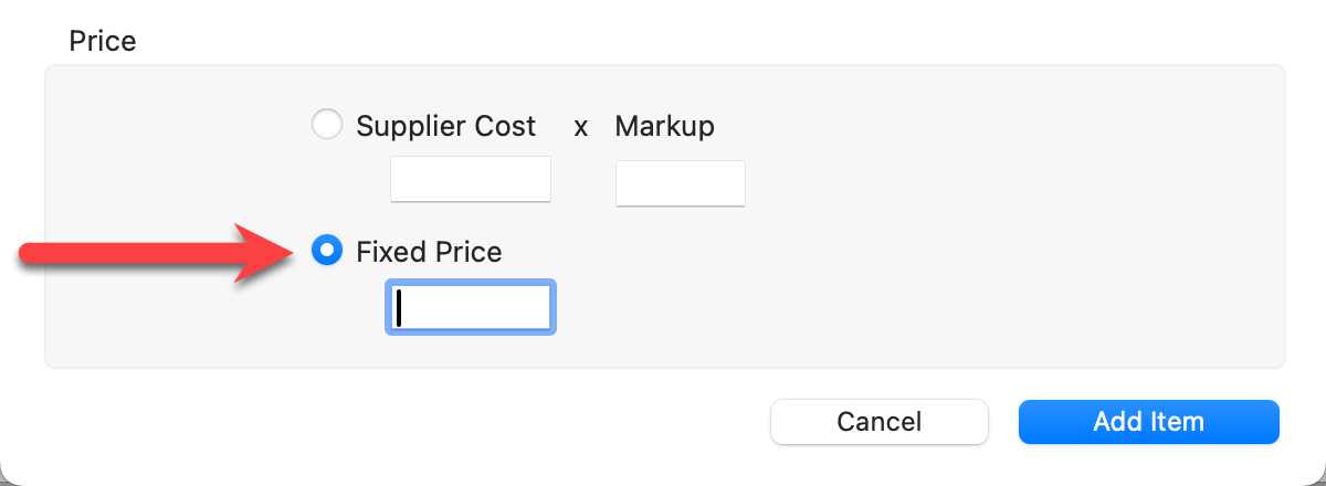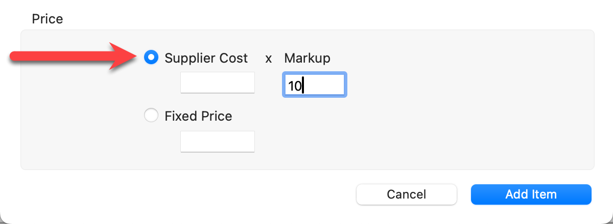 Choose Either Supplier Cost x Markup or Fixed Price.