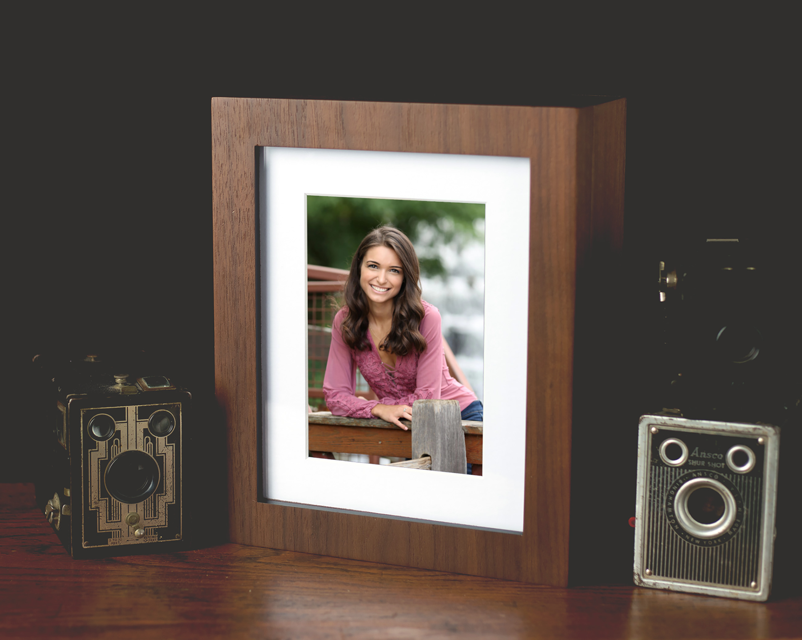 An image box is a container for a photographic product, but the box itself is not a photographic product. The image box Reference Product is utilized to demonstrate a chargeable product. It includes an opening for an image, which is used solely for illustrative purposes. However, since it is a Reference Product, the image used does not undergo Pro Production. The actual image-based products are the matted prints contained within the box, and they are ordered as separate products.