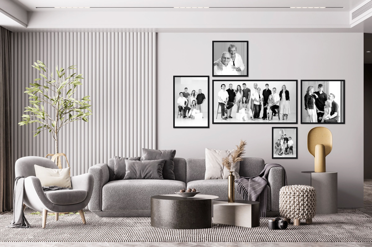 Wall groupings are a preset collection of products that can be of varying sizes, presentation types, and gallery wraps. They can support any combination of mats and frames.