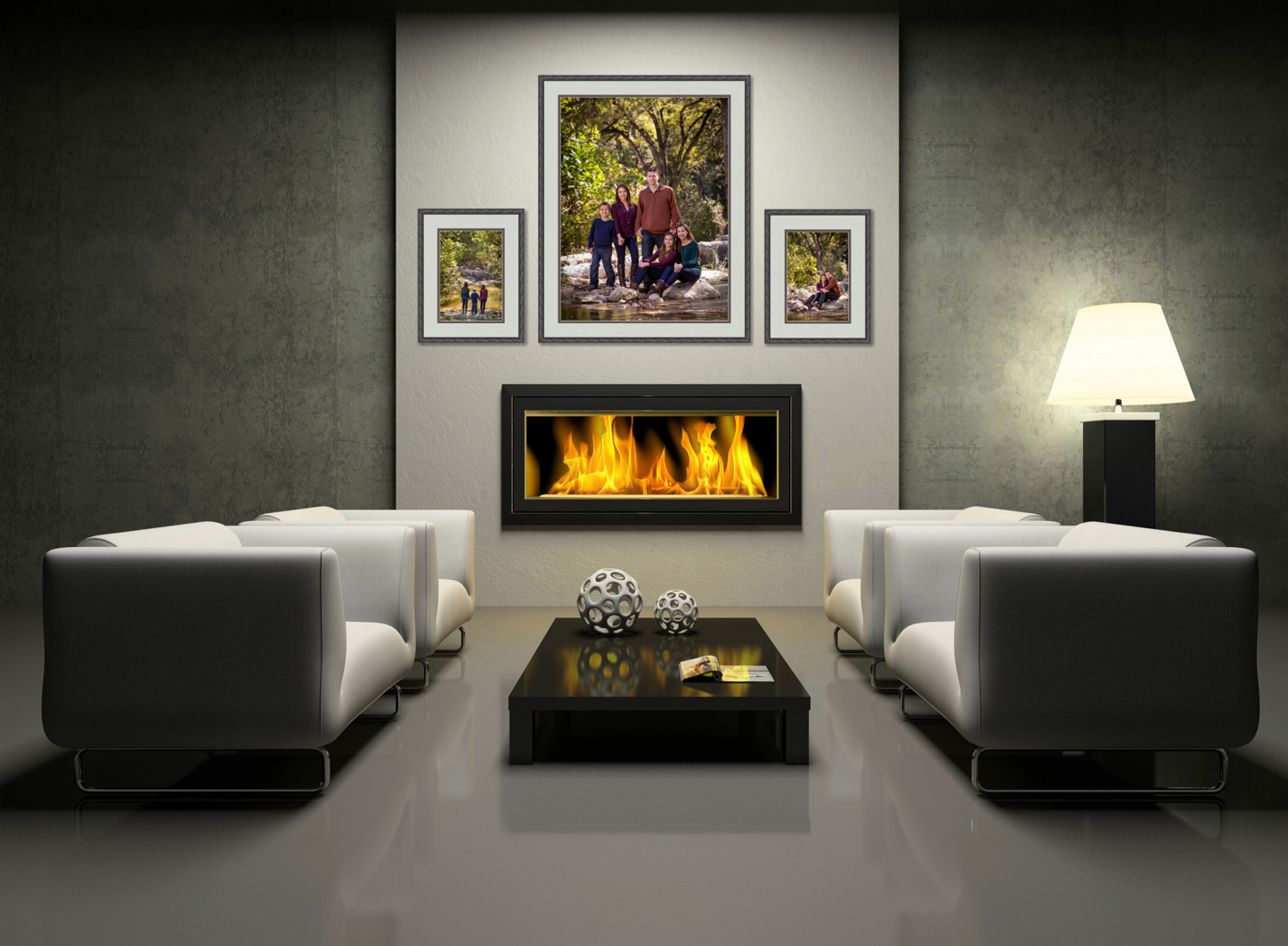 When Wall Groupings are added to rooms, the images can be moved freely. Presentation Options for the individual images can be changed or conversions can be made for Gallery Wraps. Wall Groupings are always a fixed size. In order to show different sizing options, you can create Stacked Sizes. Another feature of Wall Groupings is the ability to create different configurations within the same grouping.