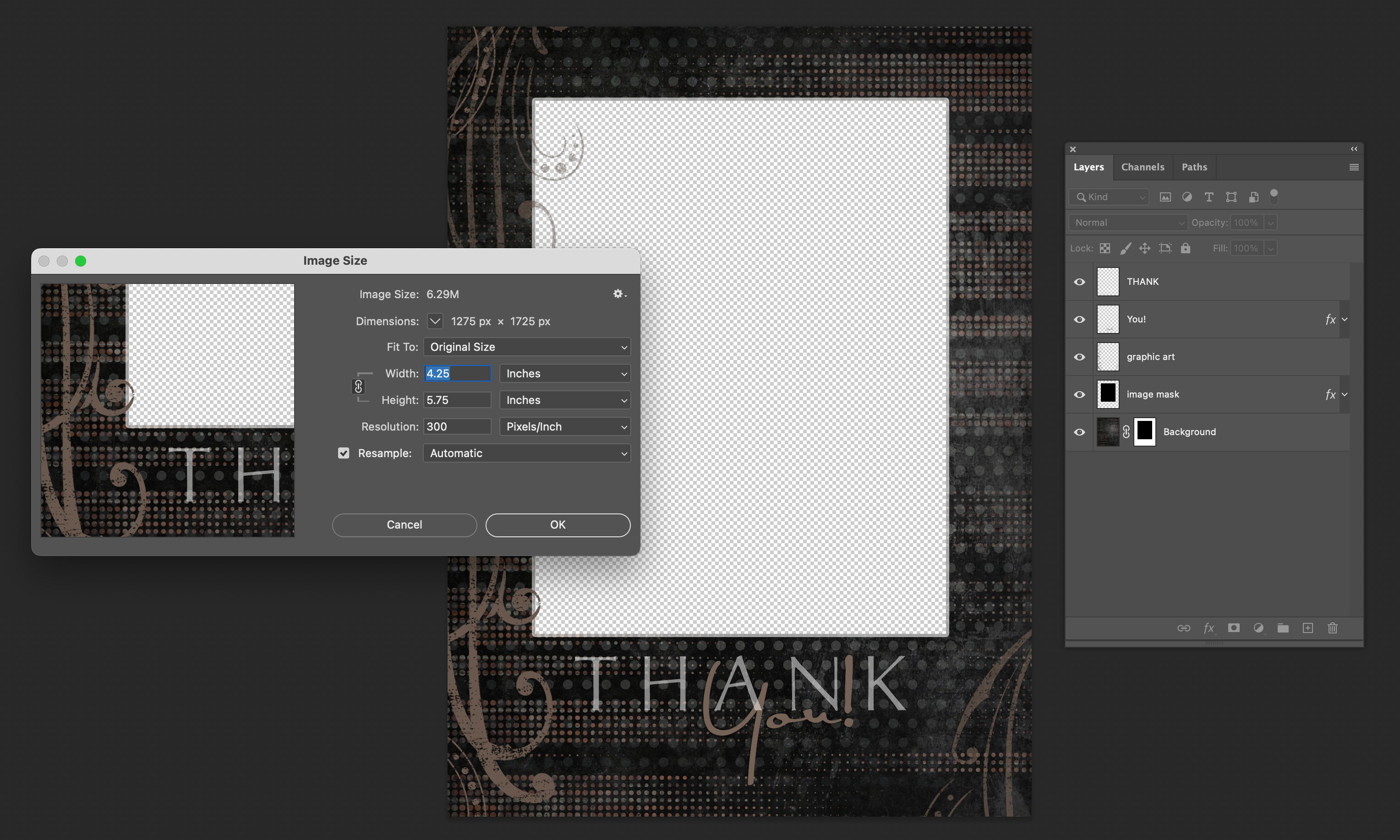 - Resolution: Typically, use a resolution of 300 pixels per inch (ppi). For Dynamic Sized products, size the overlay to match the largest product to be produced.