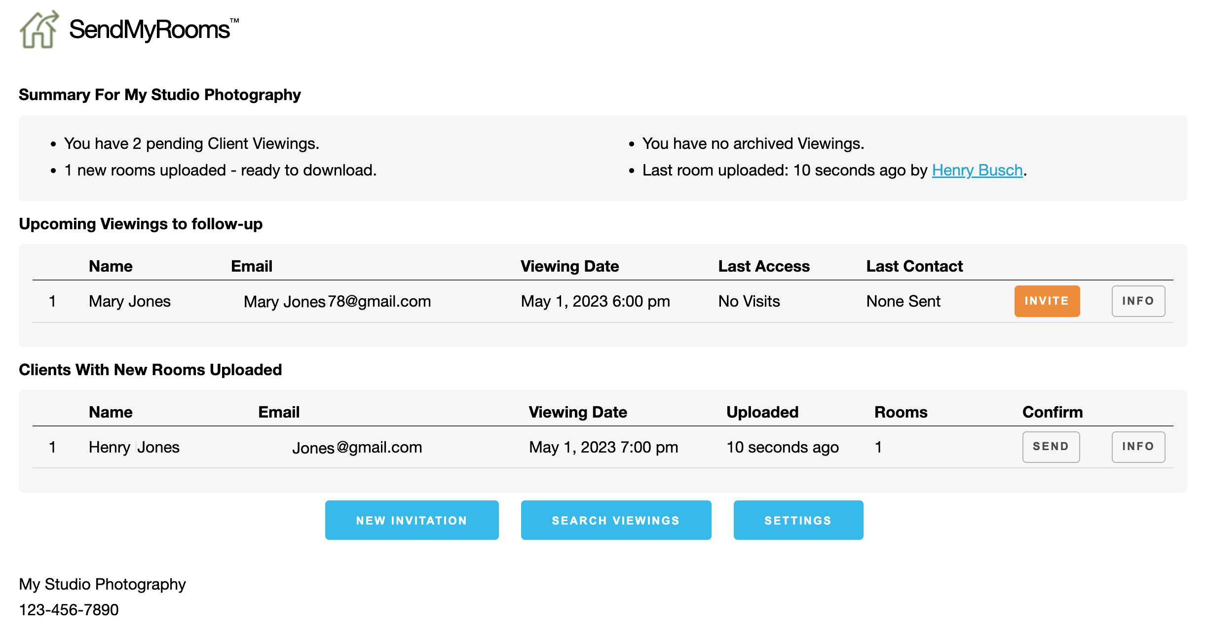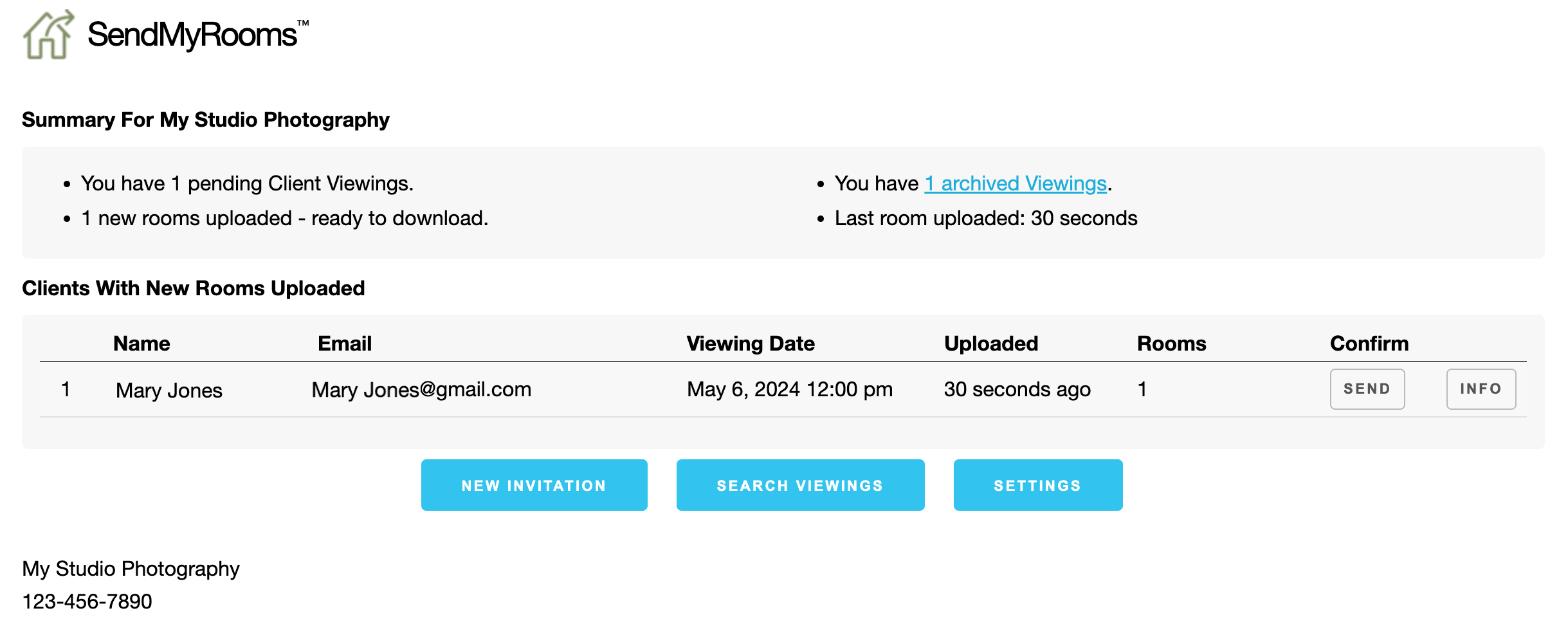 - Invite your clients to SendMyRooms™.