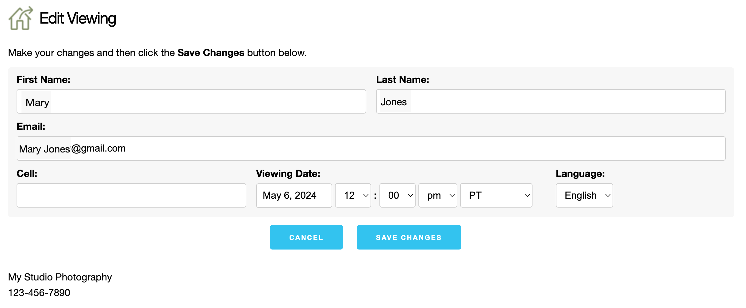 - Click on the Info button next to the viewing you wish to change.