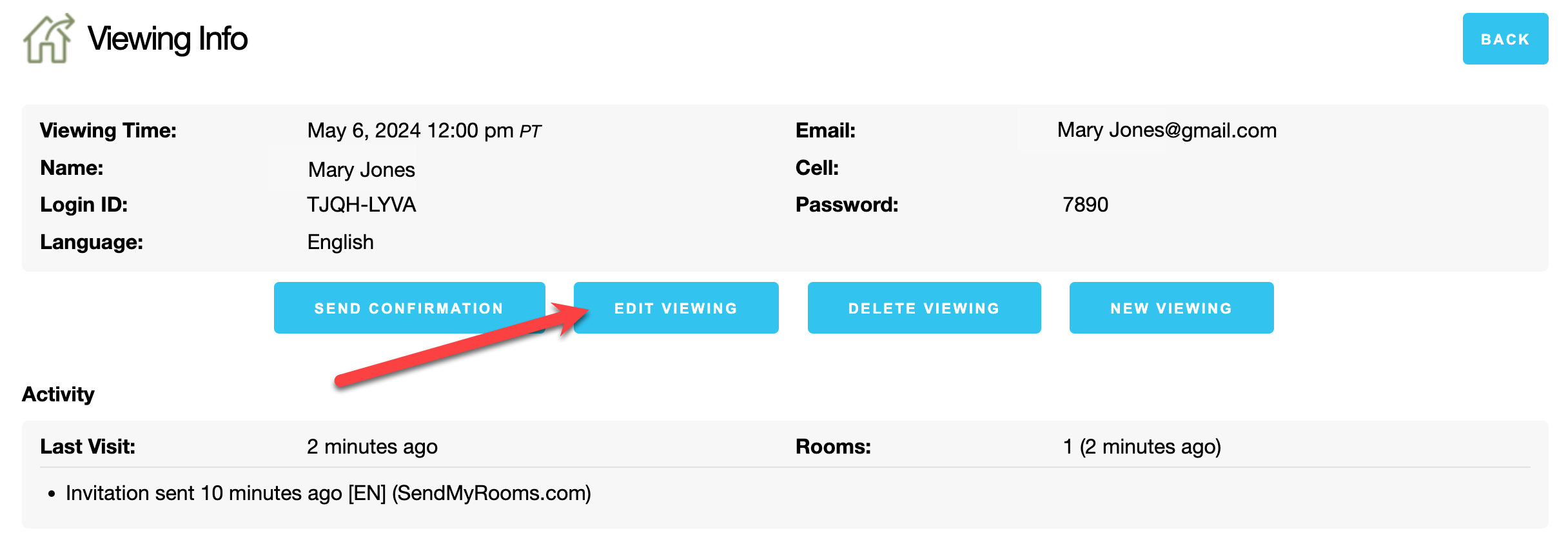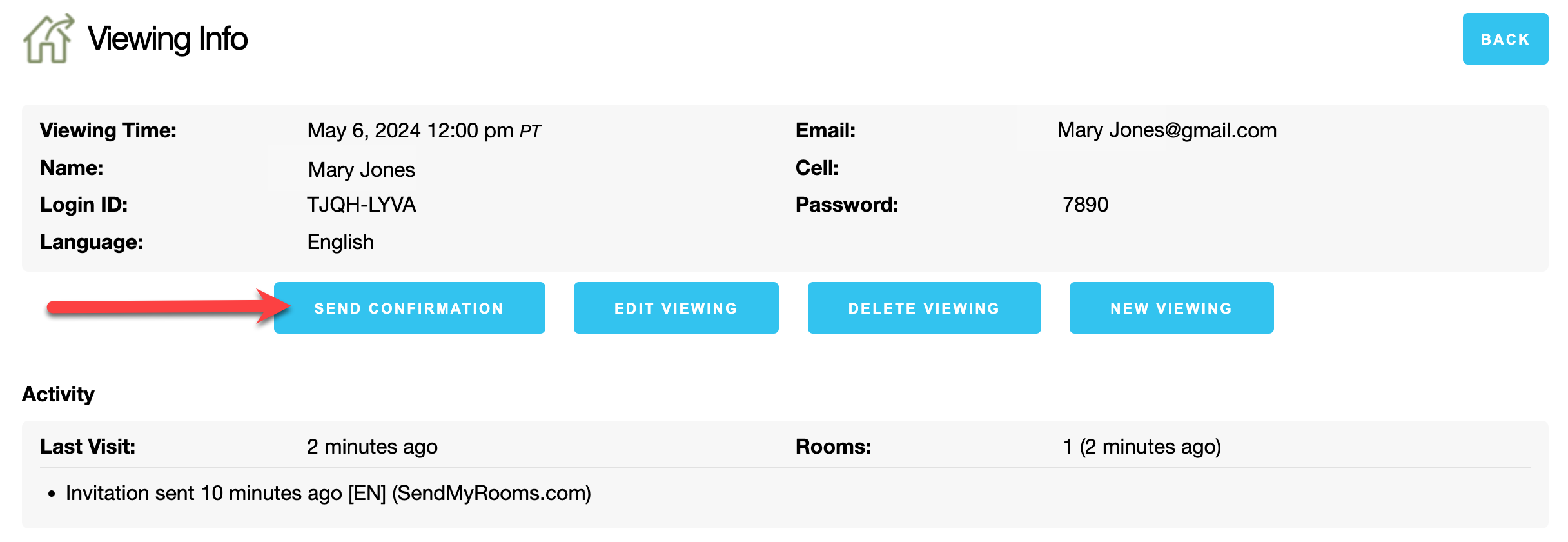 - From the Viewing Info dialog, click on Send Confirmation.