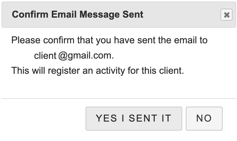 - Once you have sent the email, you must click the YES I SENT IT button. This lets the system know that you have sent the email yourself, so it can record the action as completed.
