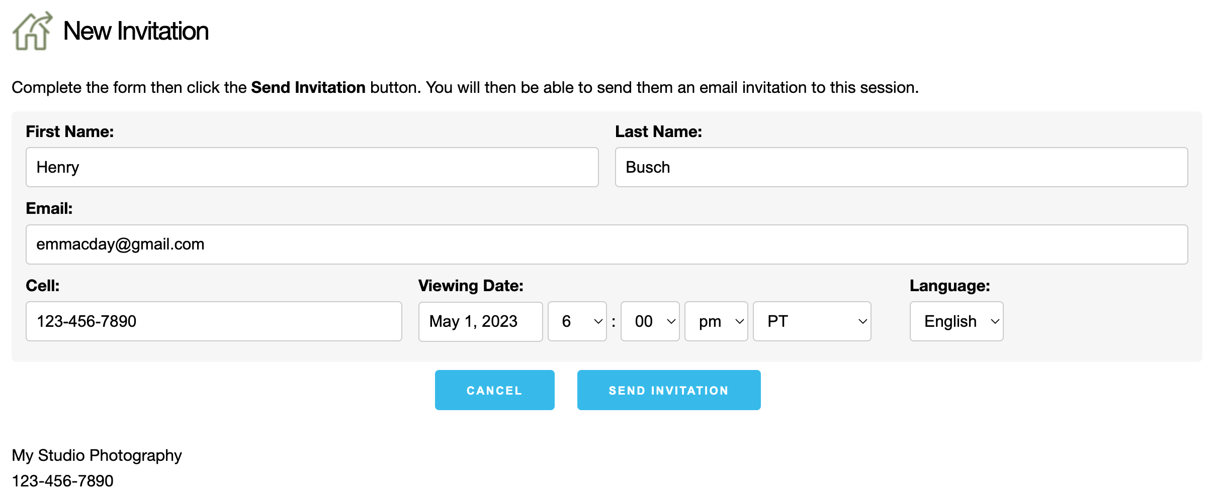- The New Invitation dialog will appear. If you have already entered your client's details into ProSelect’s Client Setup window, that information will be automatically transferred to this page. Otherwise, enter the Client's details.