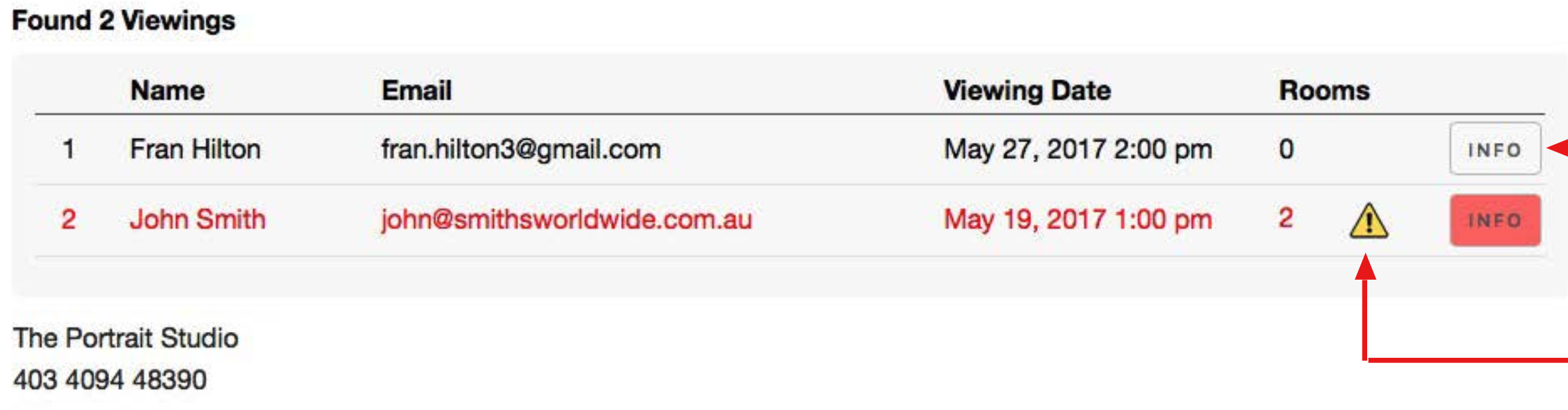- Upcoming Viewings are listed in black text with past ones shown in red.