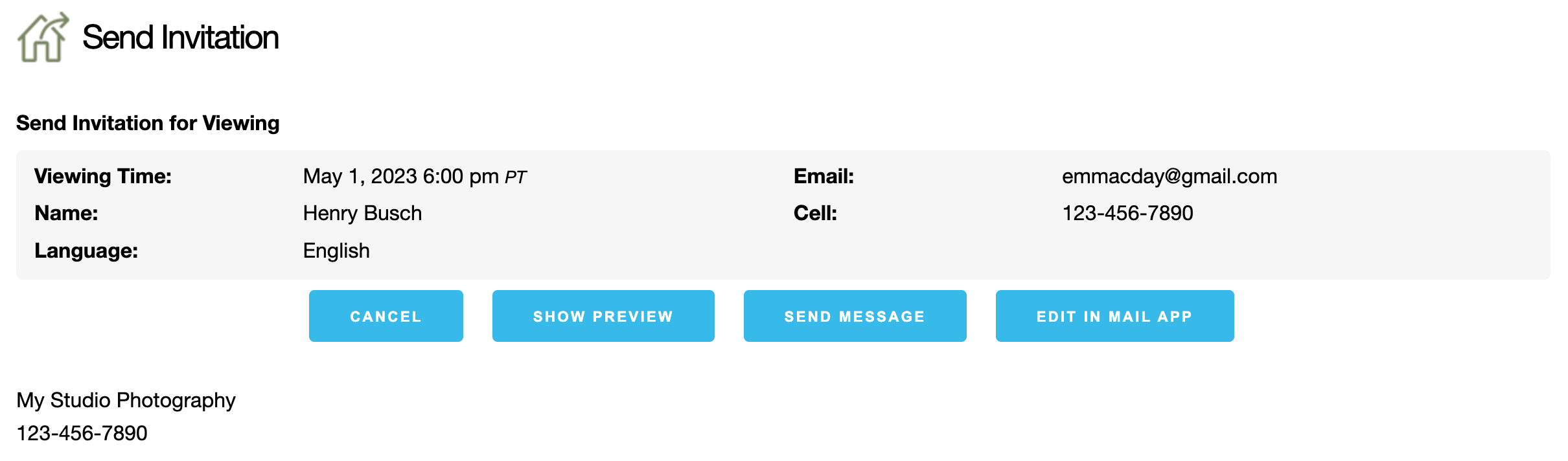 - This will open the Send Invitation dialog. Confirm that the details are correct. From here you can use the Show Preview button to preview the email before sending it.