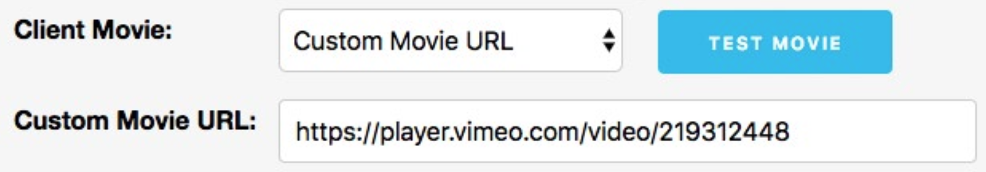 - Custom Movie URL. If you have prepared your own movie, you can choose Custom Movie URL. In this case, you need to enter the full internet path to the location where the movie is located. After entering your movie location URL, it is important that you use the Test Movie button to check that the movie plays correctly. You can also check your movie URL by entering it into the web address of your browser.