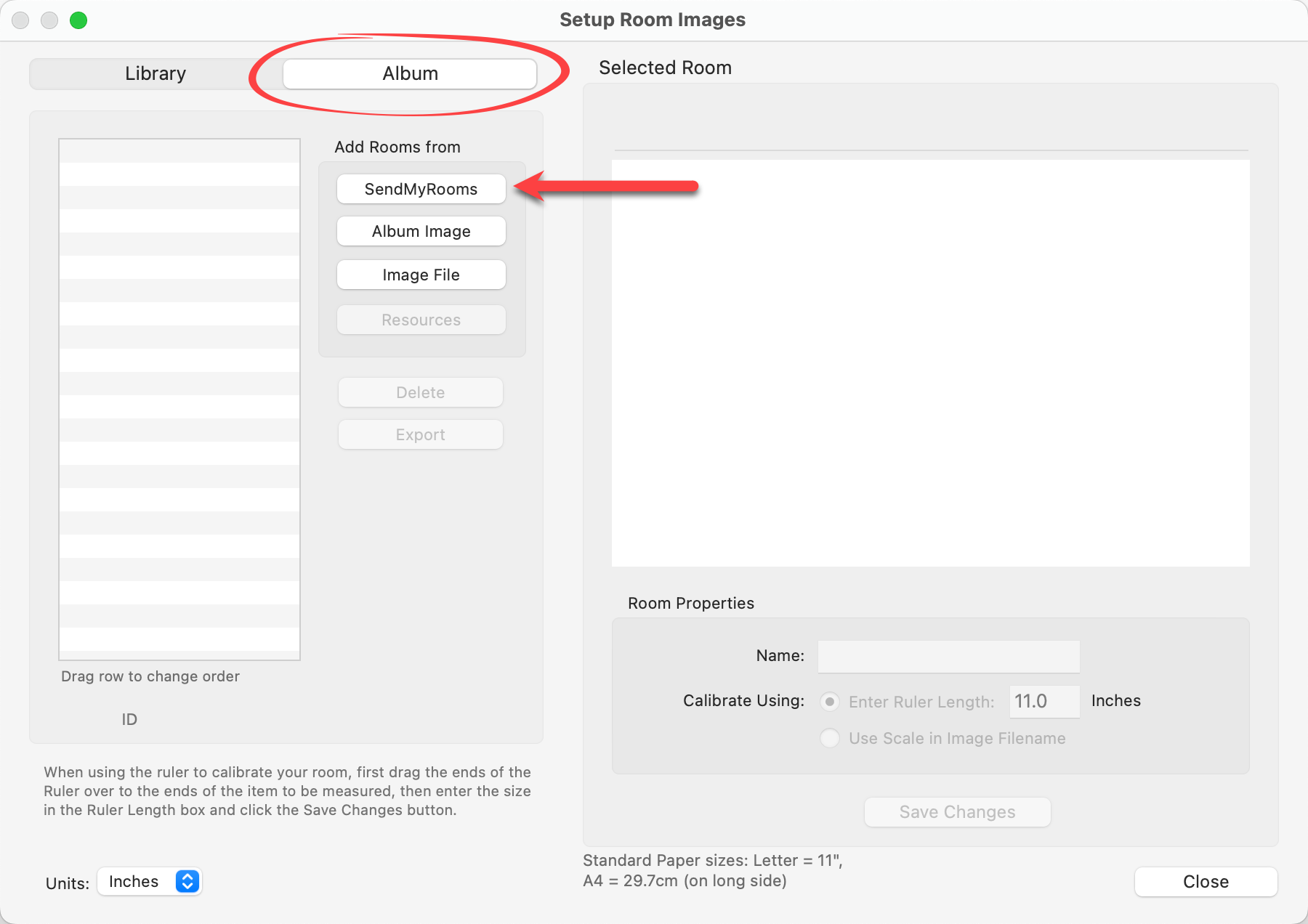 - The rooms have now been downloaded into the Client Album. Follow the calibration steps as you would for an Album room.